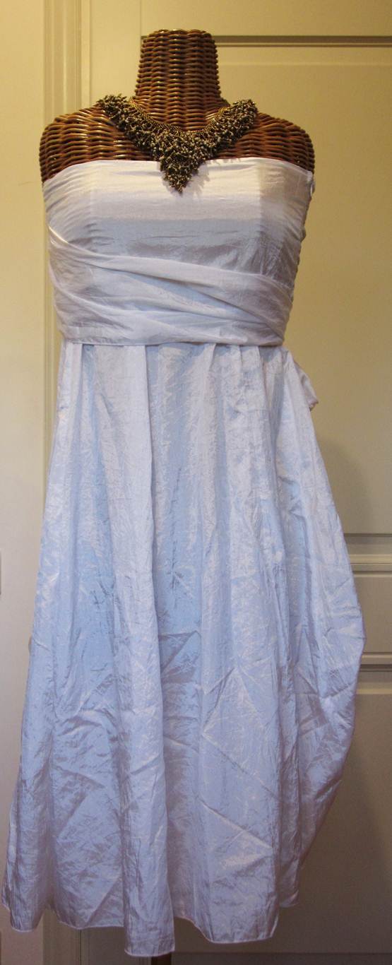 abito a fascia indonesiano bianco in taftà con il retro a nido d’ape disponibile