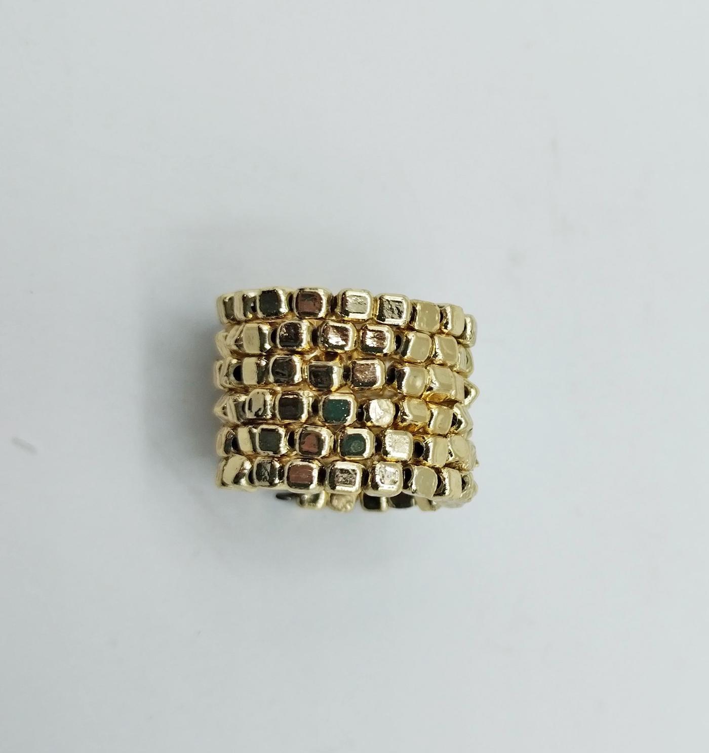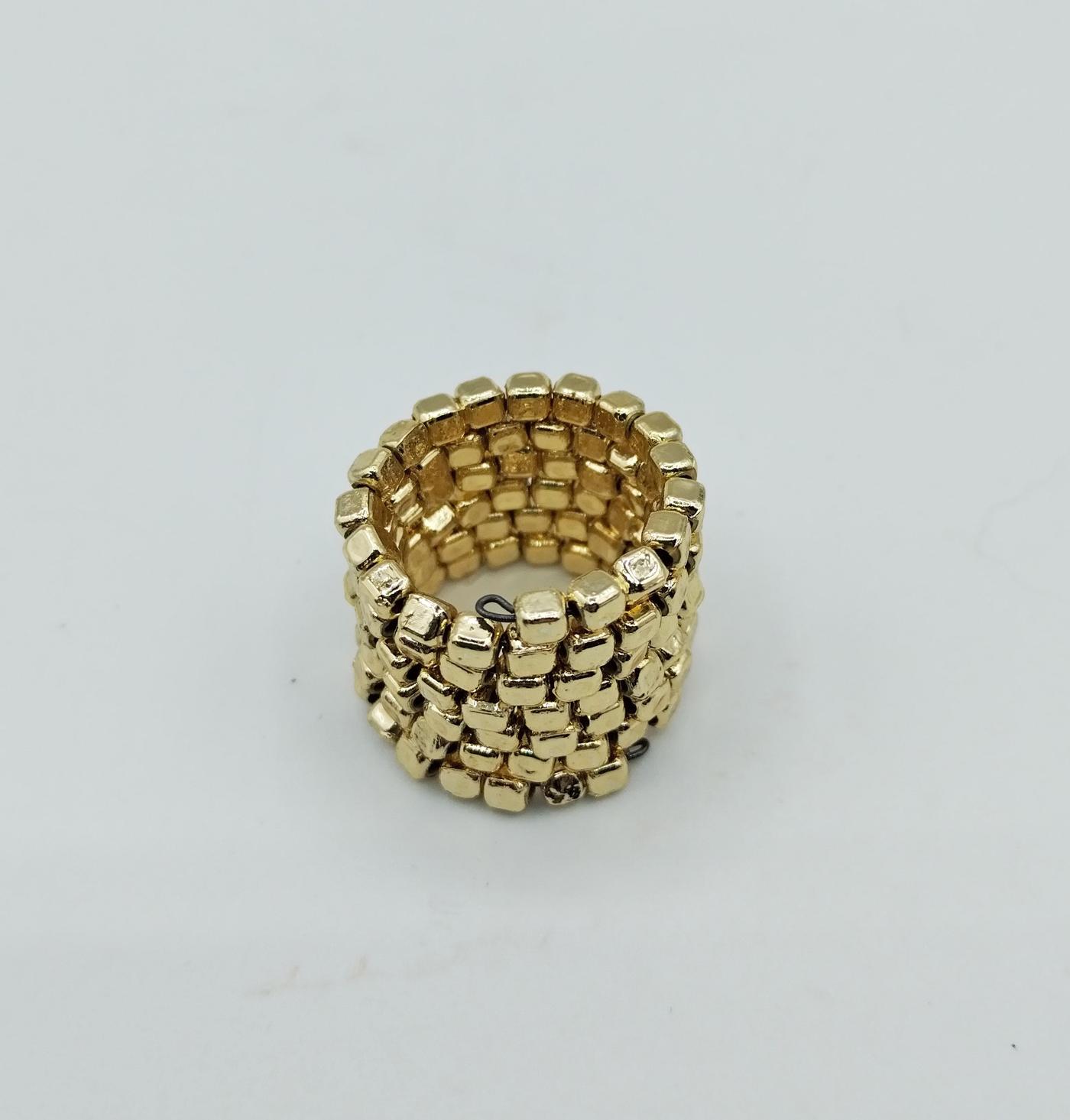 Anello a spirale indiano realizzato con perline quadrate color oro