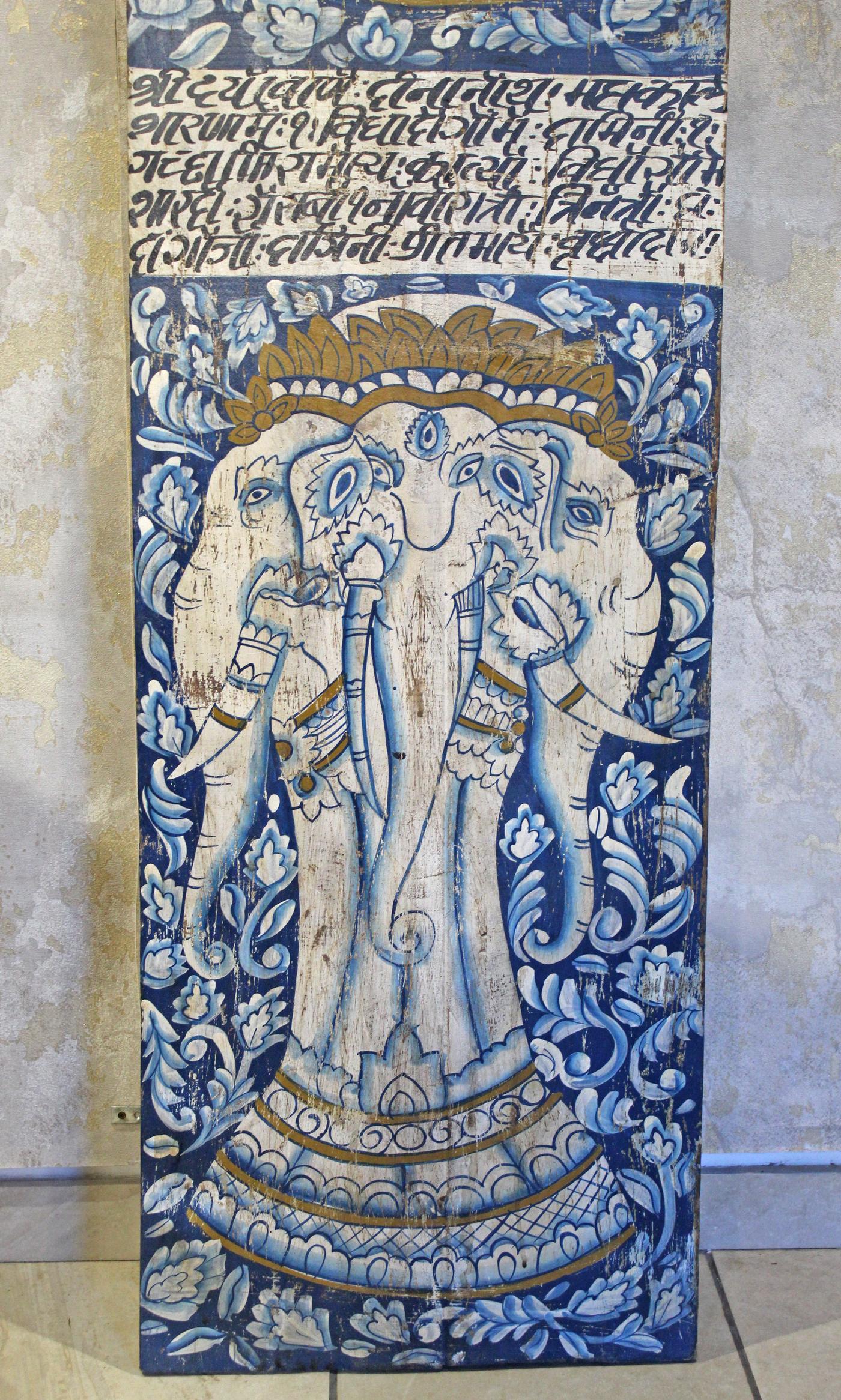 Anta indiana, in legno dipinto a mano raffigurante l’elefante bianco a tre teste, icona di saggezza e protezione