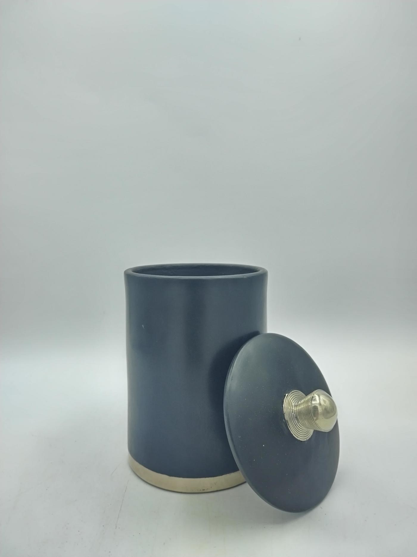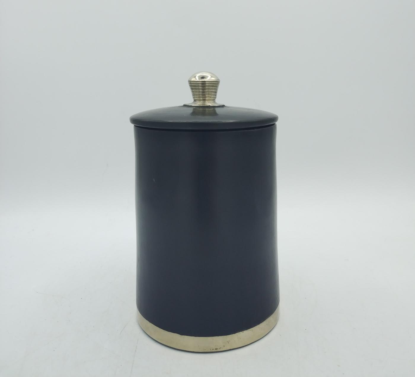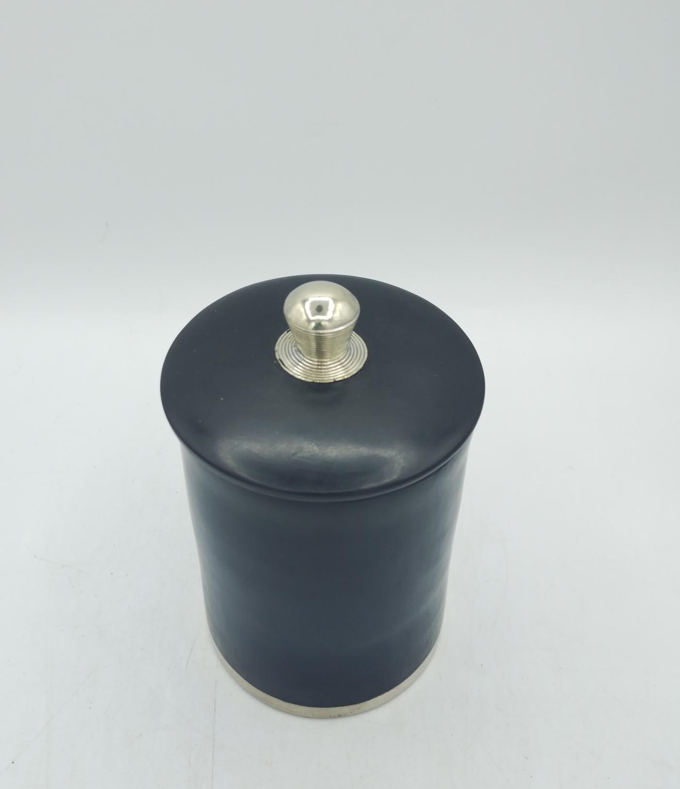 Barattolo marocchino in tadelakt nero con pomello e bordo rifiniti in argentone, essendo un prodotto artigianale potrebbero esserci leggere imperfezioni