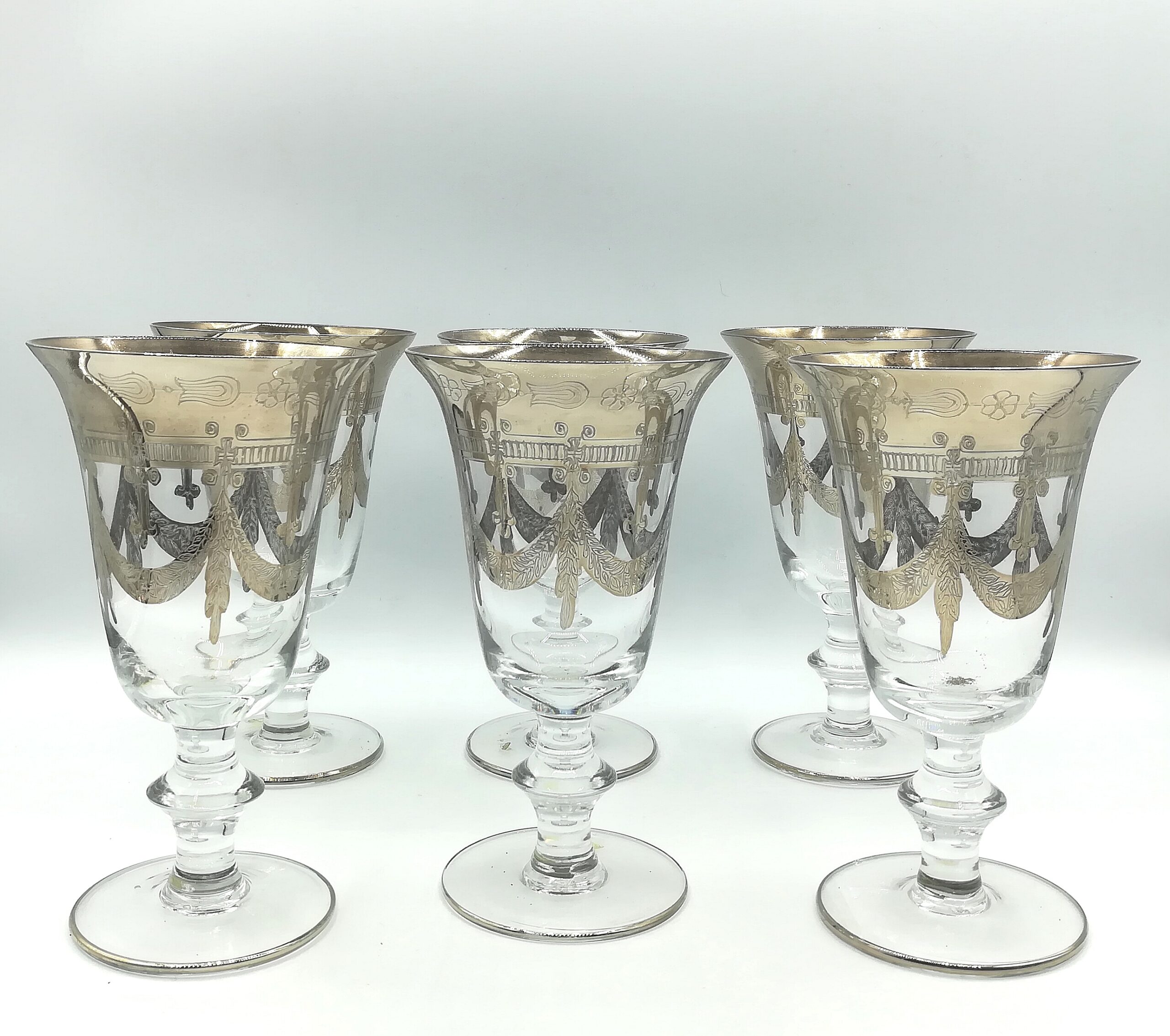 Bicchieri di murano con bordo e disegni in platino in confezione da sei pezzi