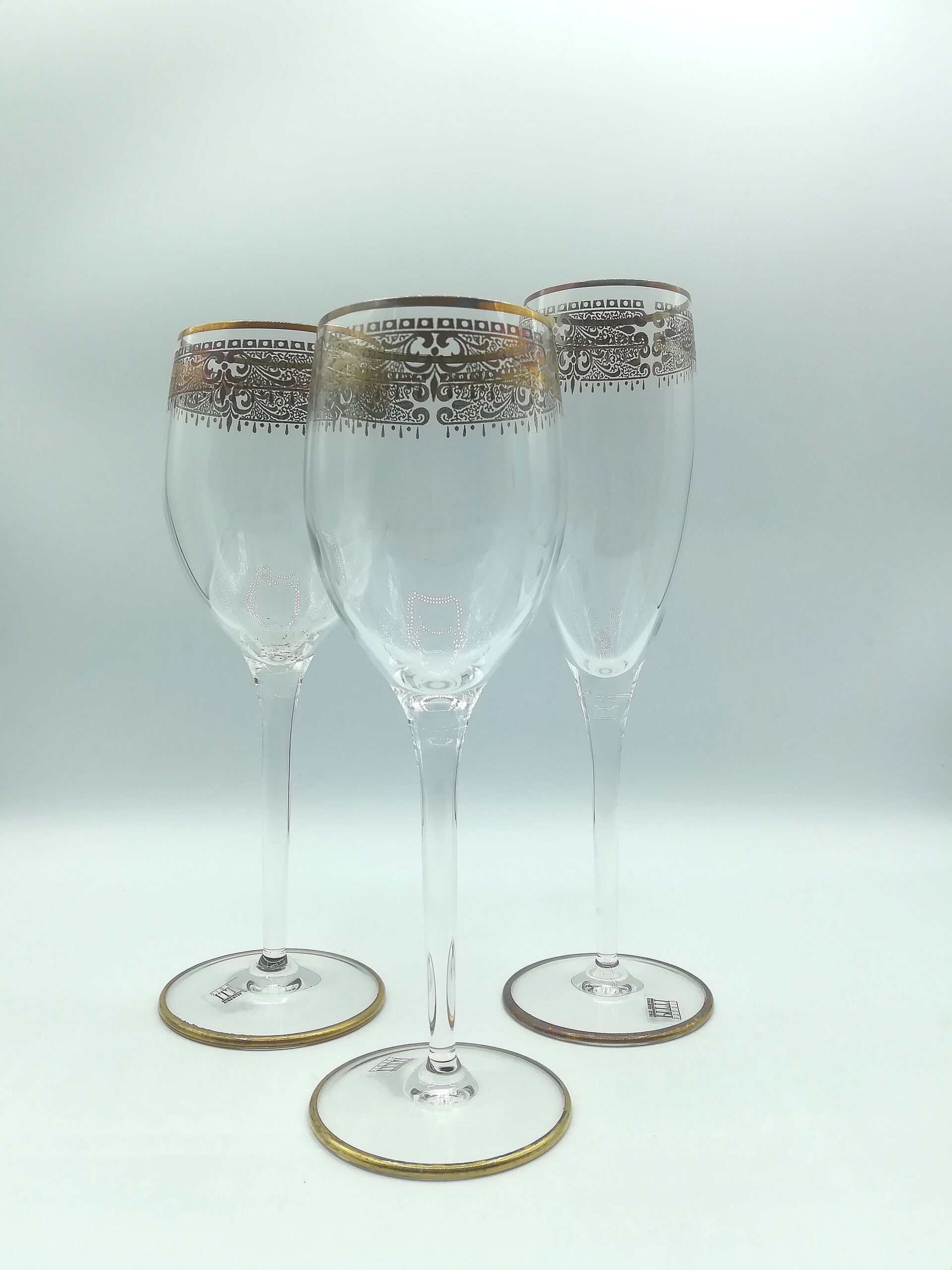 Questo esclusivo set di bicchieri è realizzato in vetro soffiato di Murano, un materiale rinomato per la sua qualità eccezionale e per la sua lunga tradizione artigianale. Il set comprende trentasei calici, vino, acqua e flute, con incisioni a motivo floreale, con base e bordo dorato, per dare un tocco di eleganza e originalità alla tua tavola.