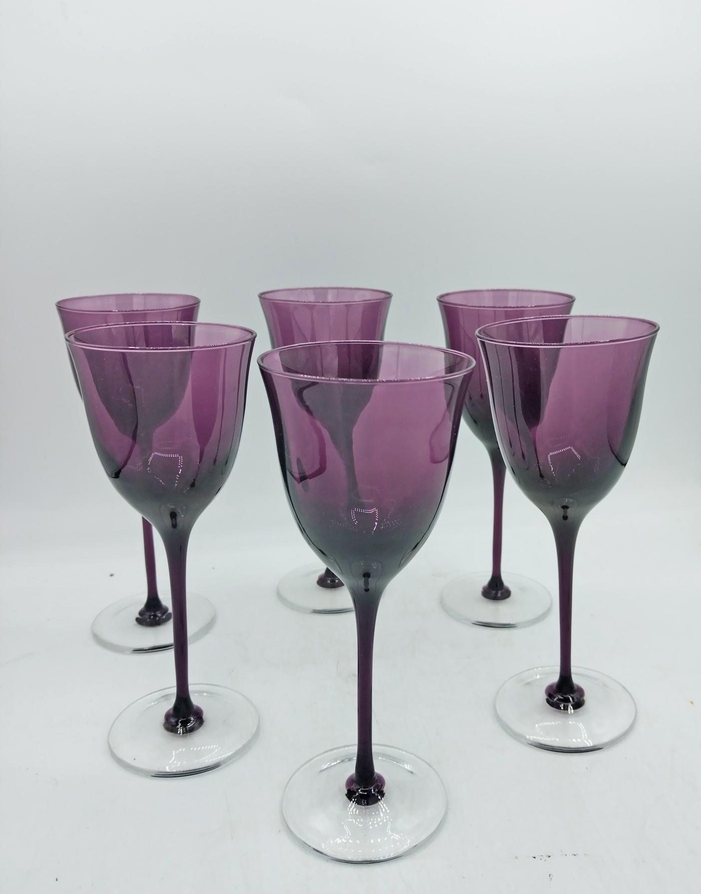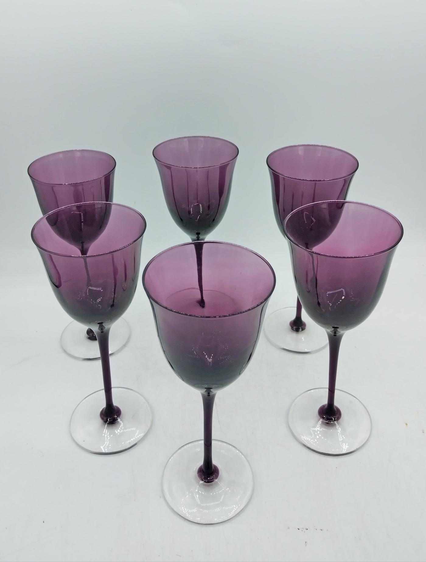 Set di sei calici in cristallo di Murano color viola