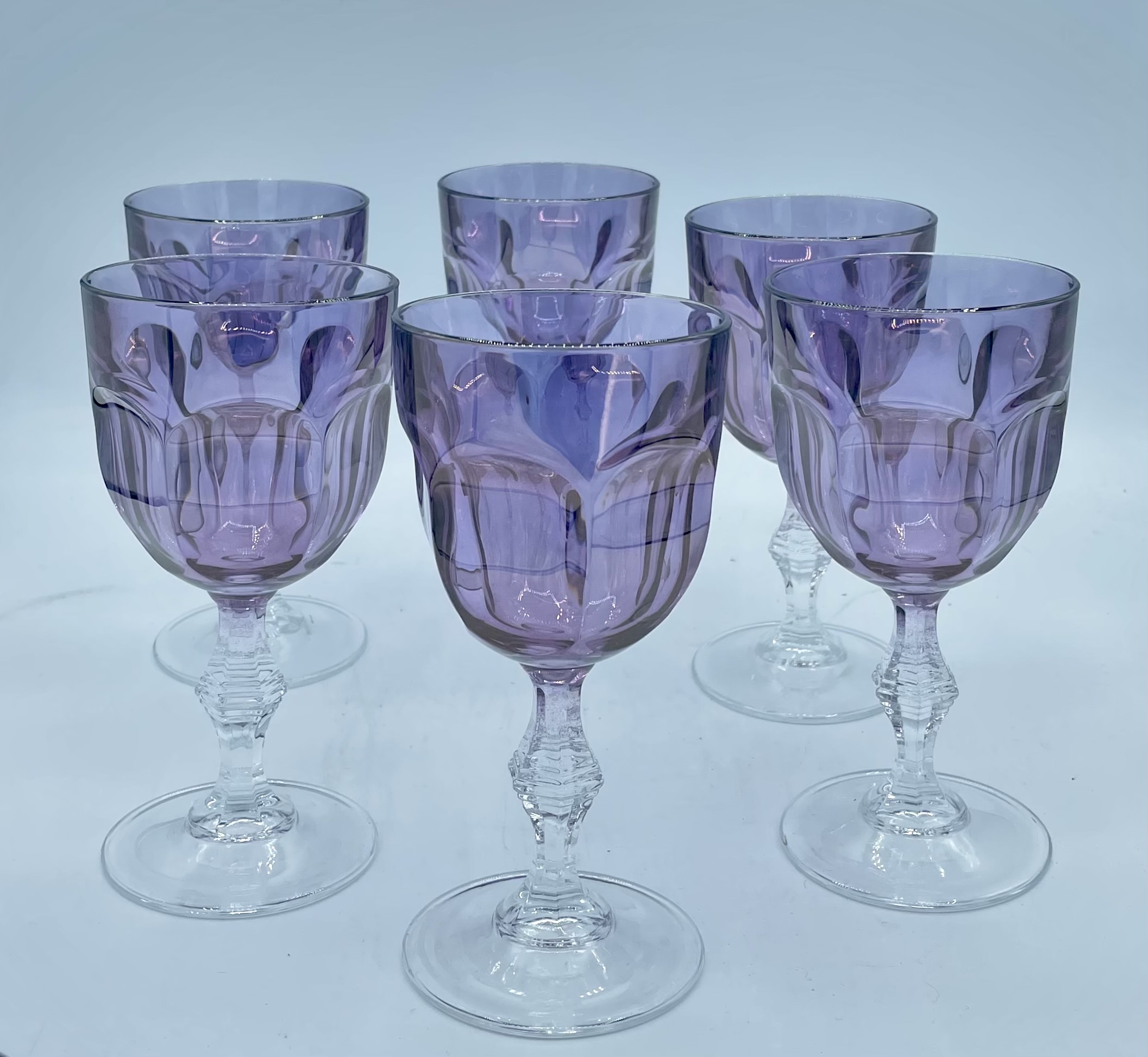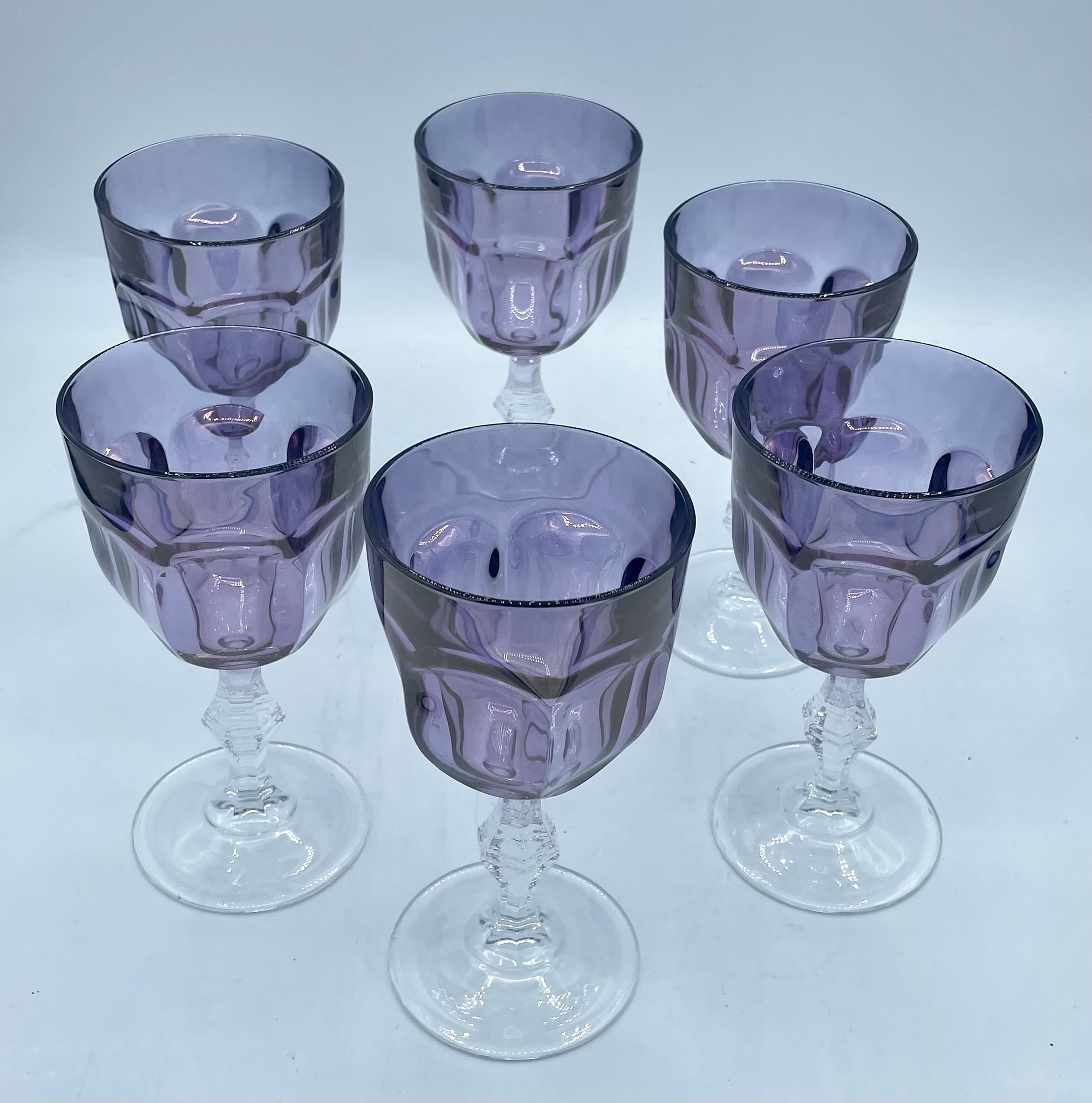 Bicchieri vino color viola in vetro soffiato di Murano, in scatola da sei pezzi