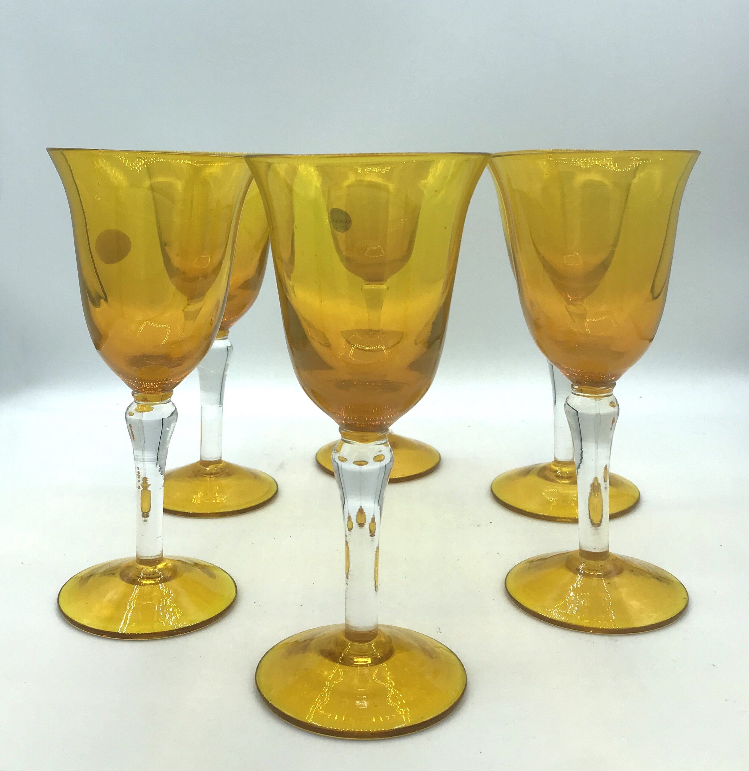 Bicchieri acqua color giallo in vetro soffiato di Murano in scatola da quattro pezzi