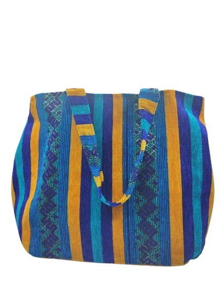 Borsa realizzata in Marocco con un tessuto in ciniglia a righe, foderata all’interno con un tessuto ecrù