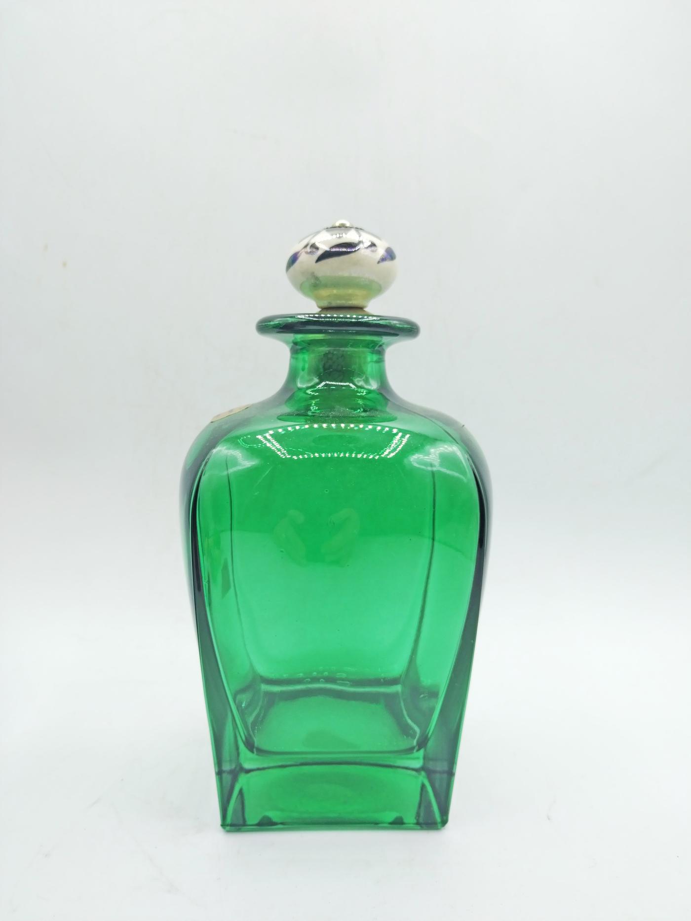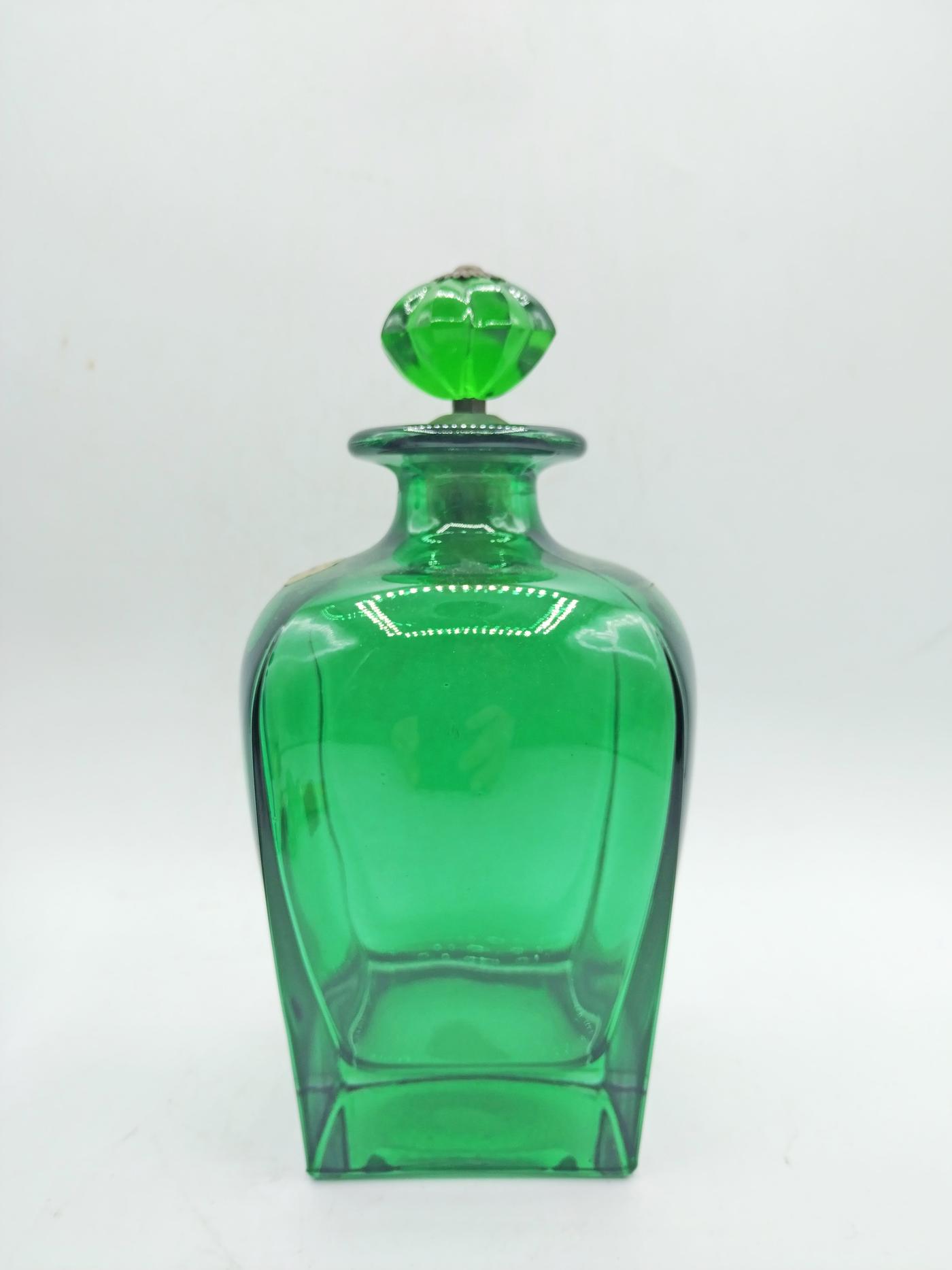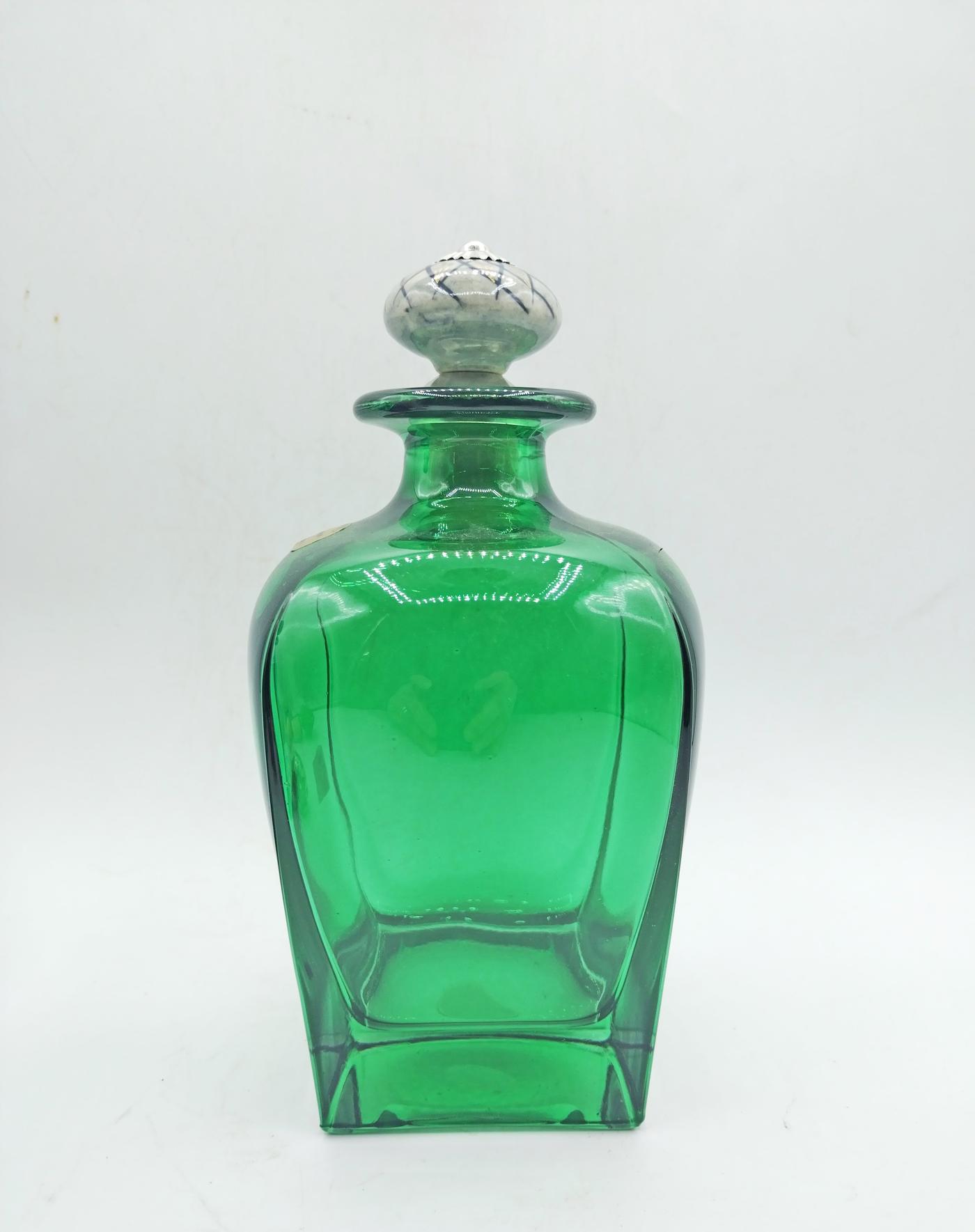 Bottiglia per liquore in vetro soffiato di murano color verde; la possibilità di scegliere il tappo che più si abbina ai vostri gusti