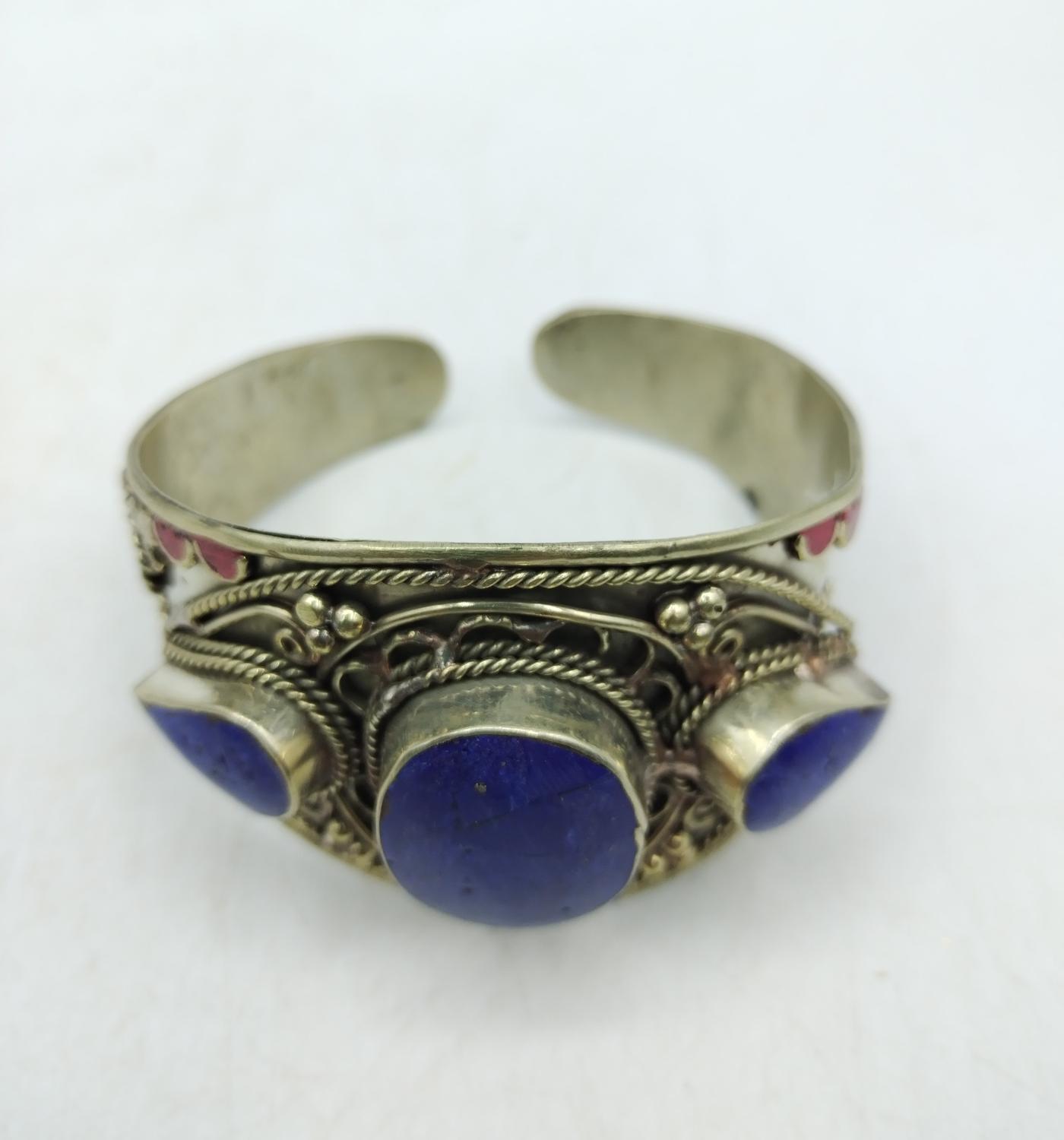 Bracciale berbero realizzato artigianalmente in Marocco, in argentone con pietre dure