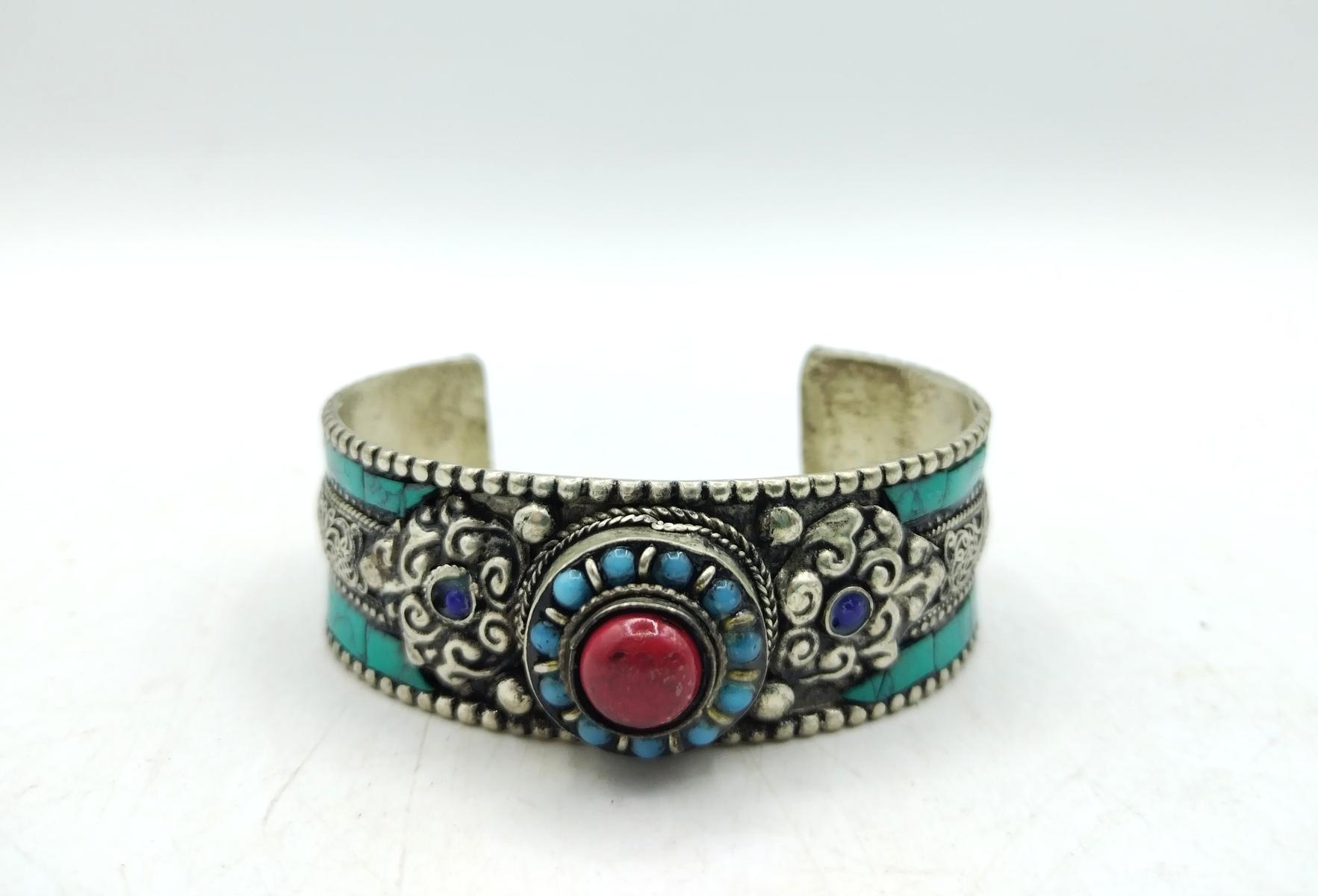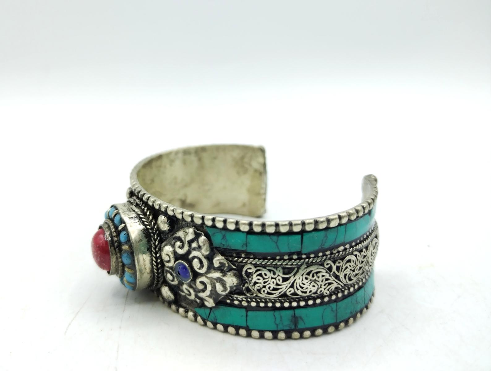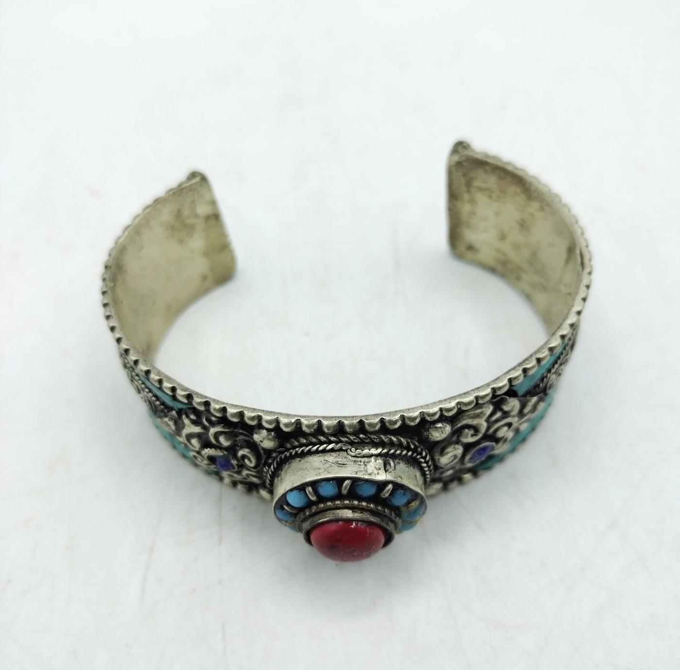Bracciale berbero realizzato artigianalmente in Marocco, in argentone con pietre dure