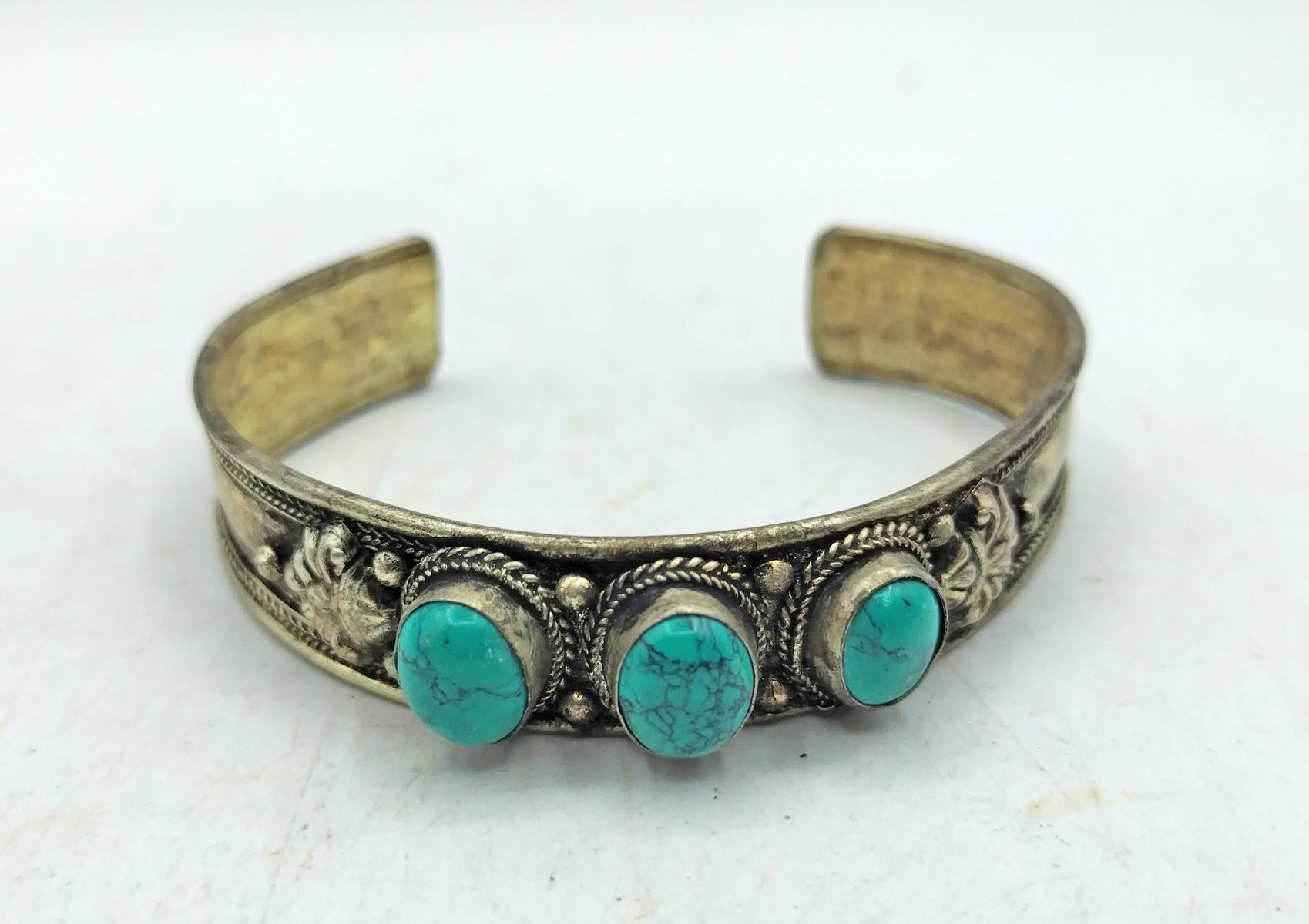 Bracciale berbero, realizzato artigianalmente in Marocco, in argentone con turchesi