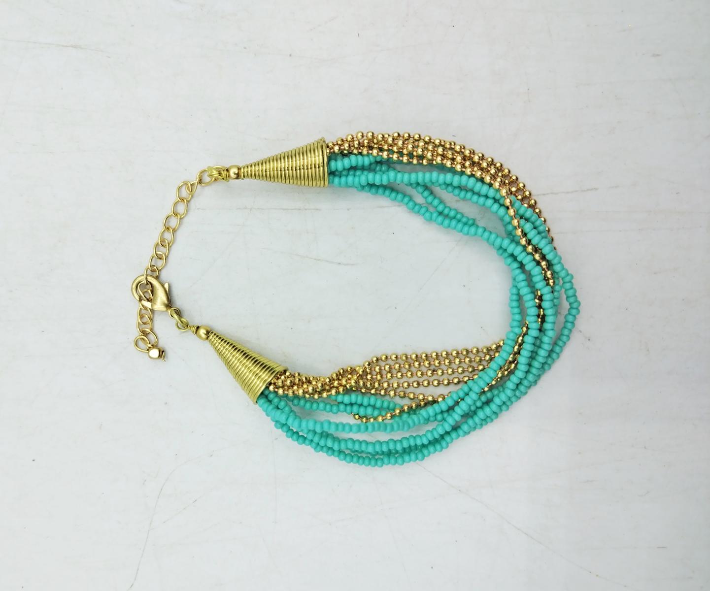 Bracciale realizzato artigianalmente in India con più fili e chiusura regolabile