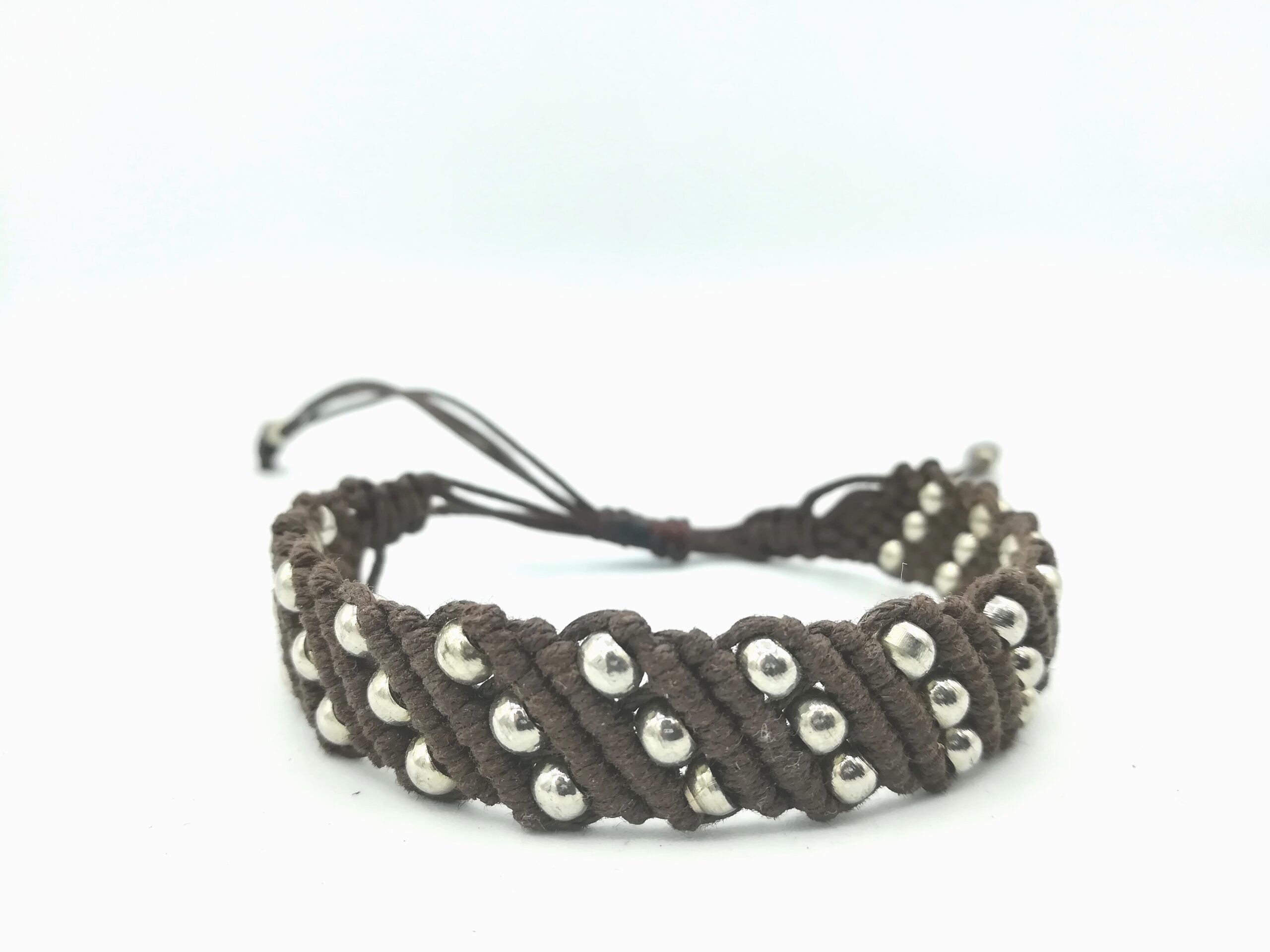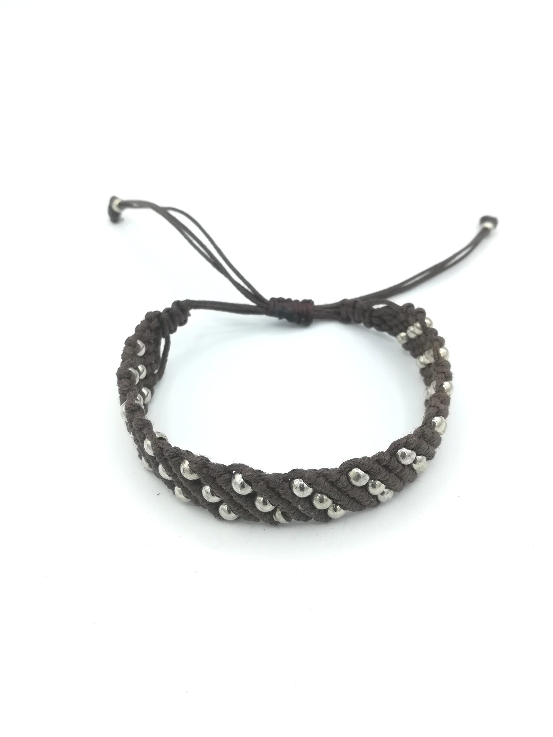Bracciale unisex in tessuto color marrone con inserti in metallo,misura regolabile