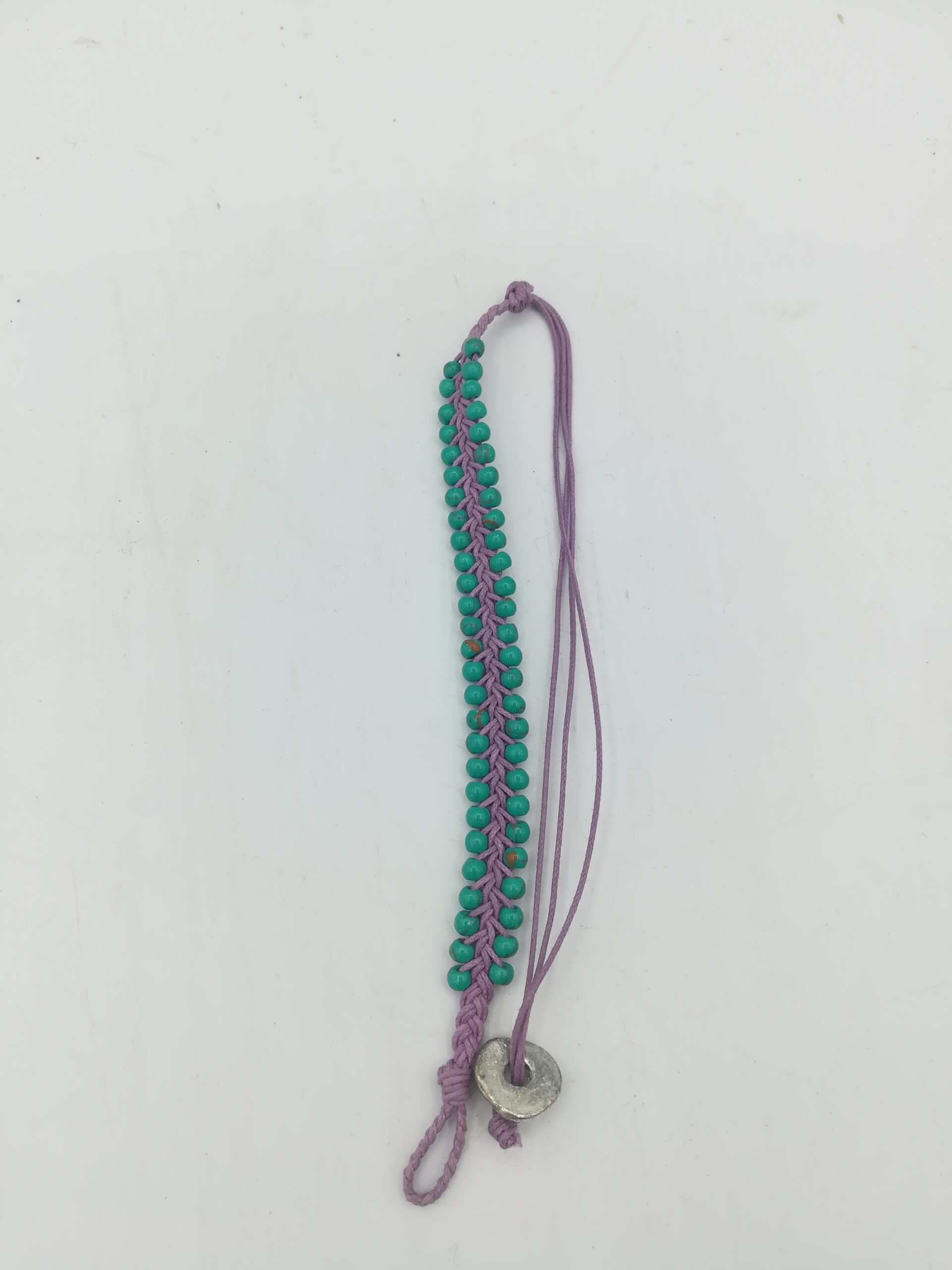Bracciale in tessuto color lilla con inserti in legno color turchese