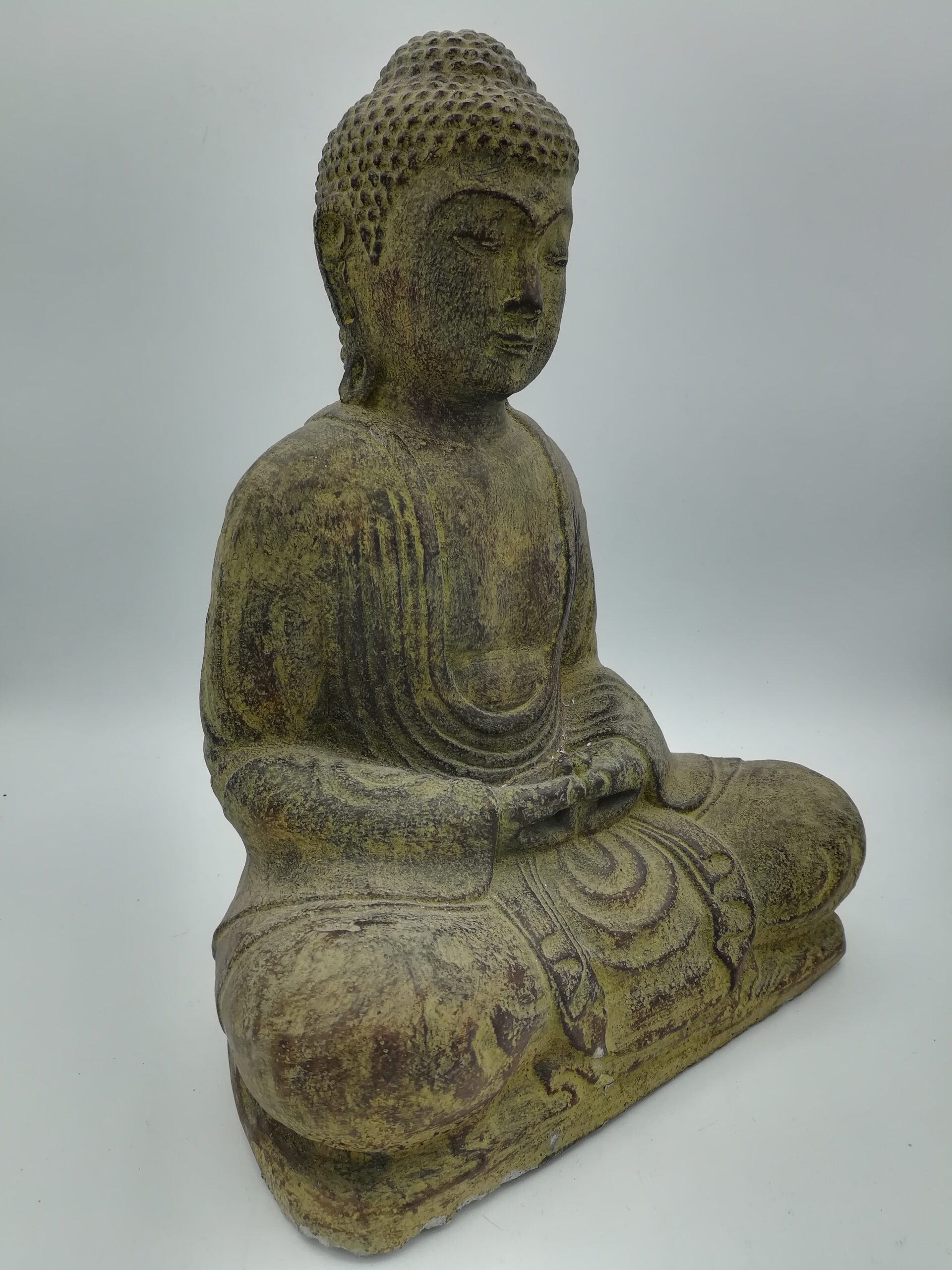 Statua indonesiana in pietra raffigurante il Buddha seduto in posizione meditativa