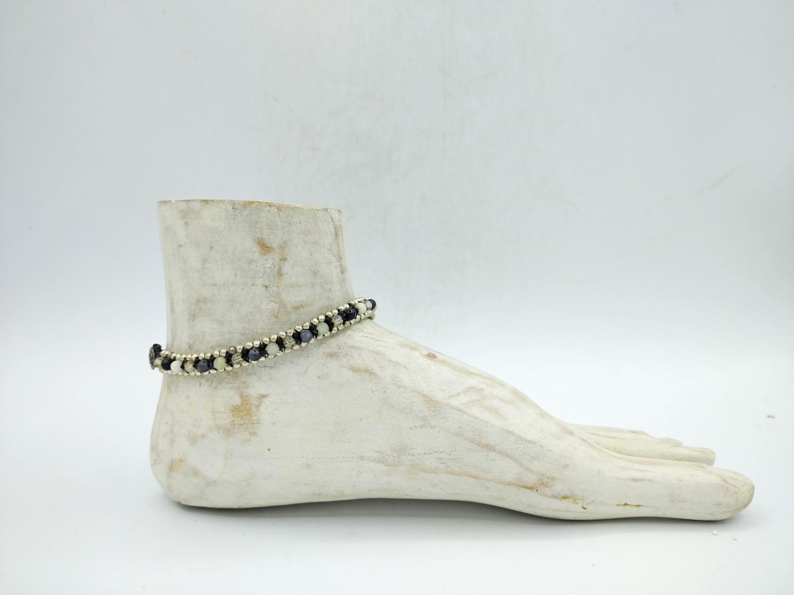La chiusura con bottone piatto in metallo argentato completa il design con praticità e carattere, rendendo questa cavigliera perfetta per chi ama dettagli discreti ma ricercati.