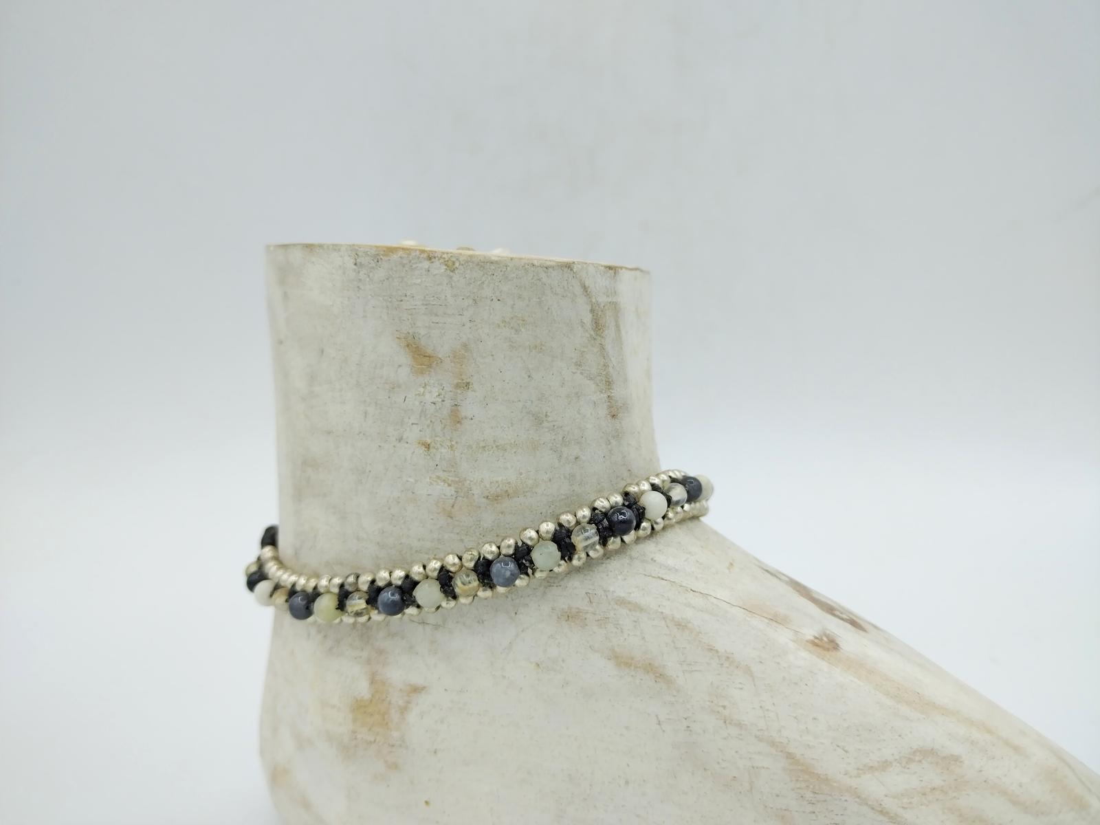 Cavigliera realizzata artigianalmente in India, con cordoncino in cotone e perline