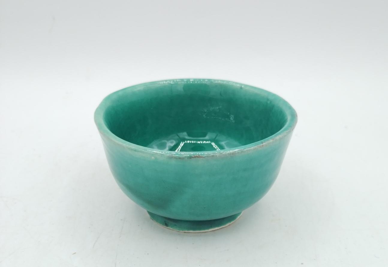 Ciotola in terracotta smaltata turchese realizzata in Marocco
