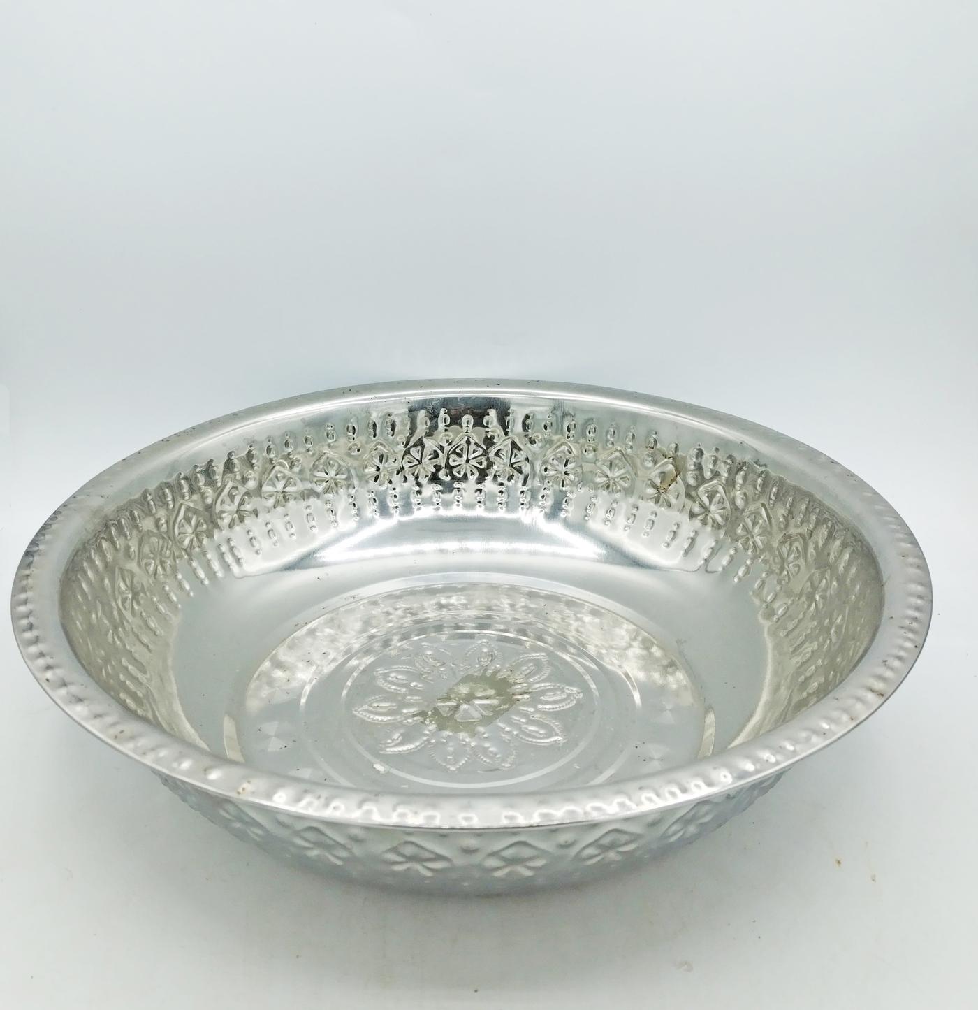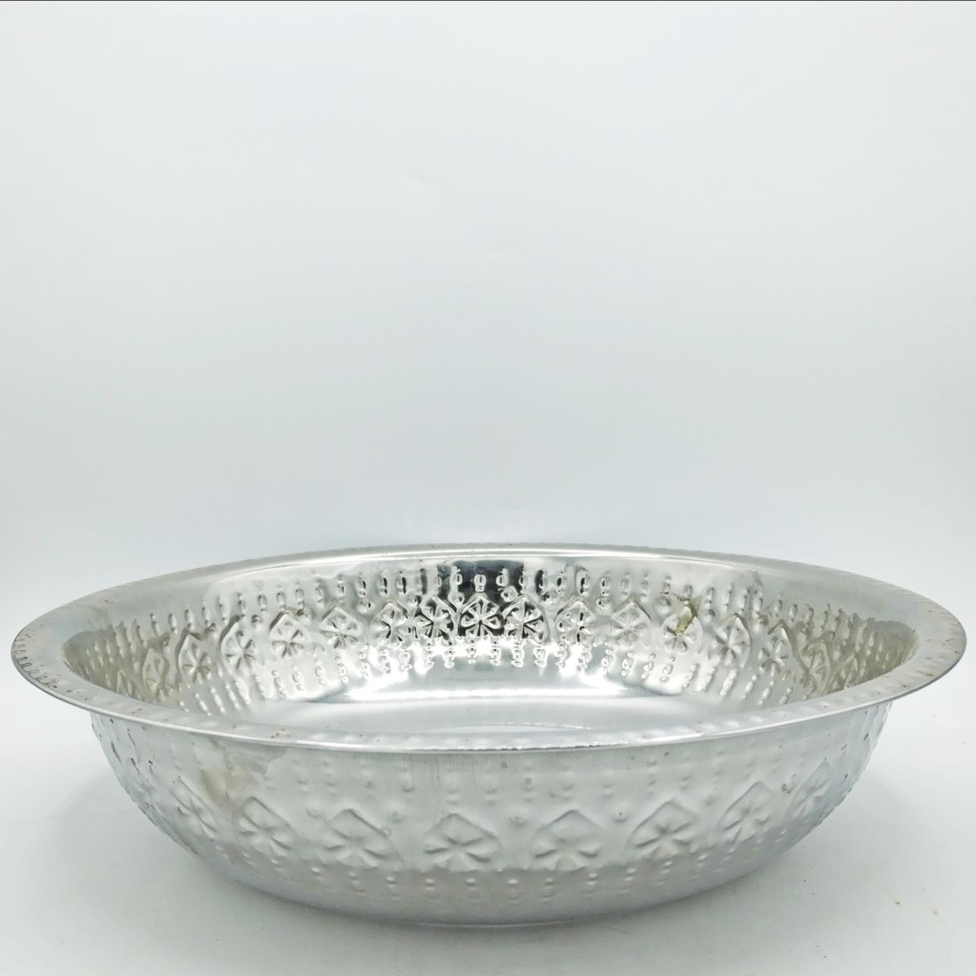 Ciotola realizzata in Indonesia, in latta sbalzata a mano con motivi floreali