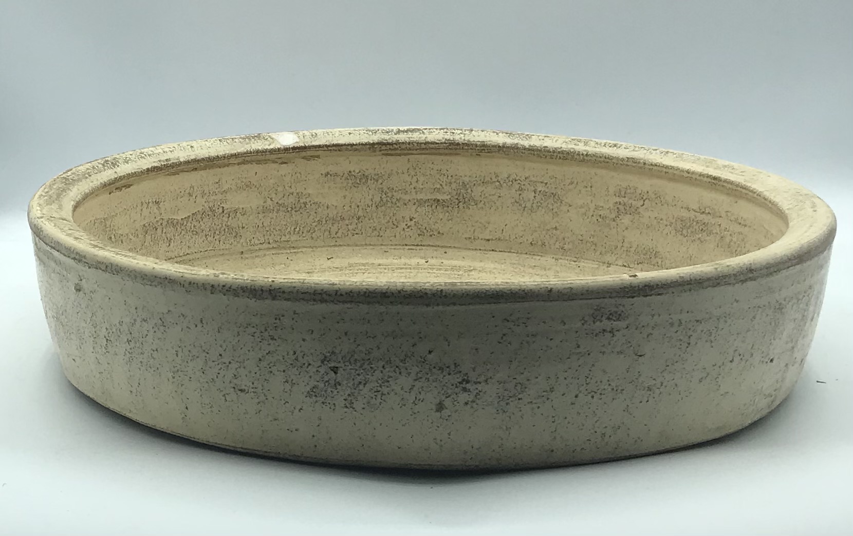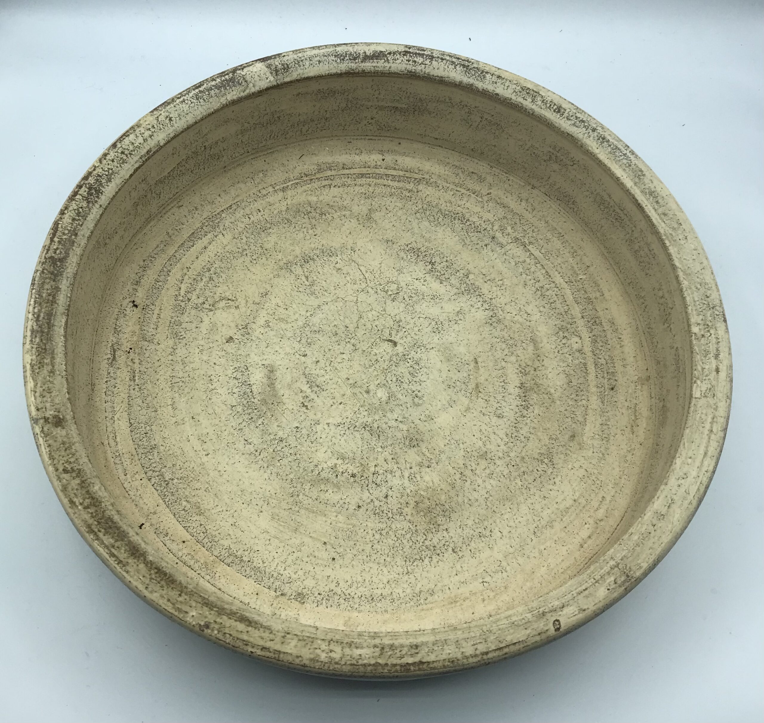 Ciotola grande liscia bassa in terracotta decapata color crema, realizzata artigianalmente in Indonesia