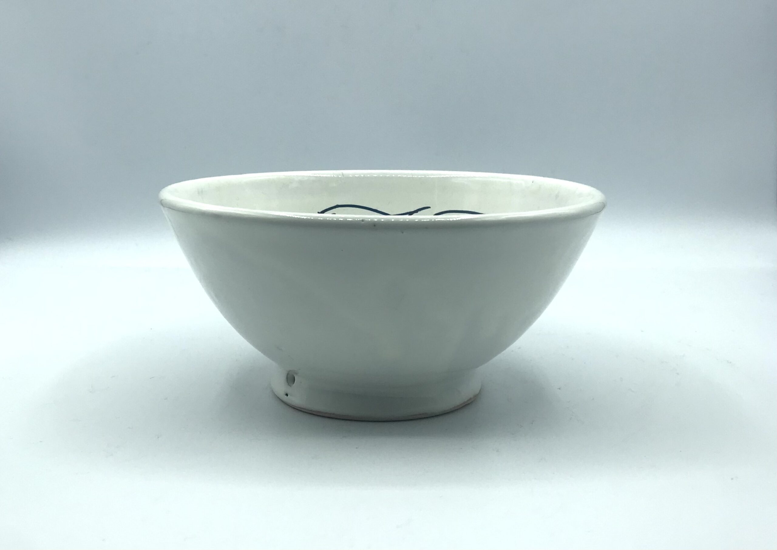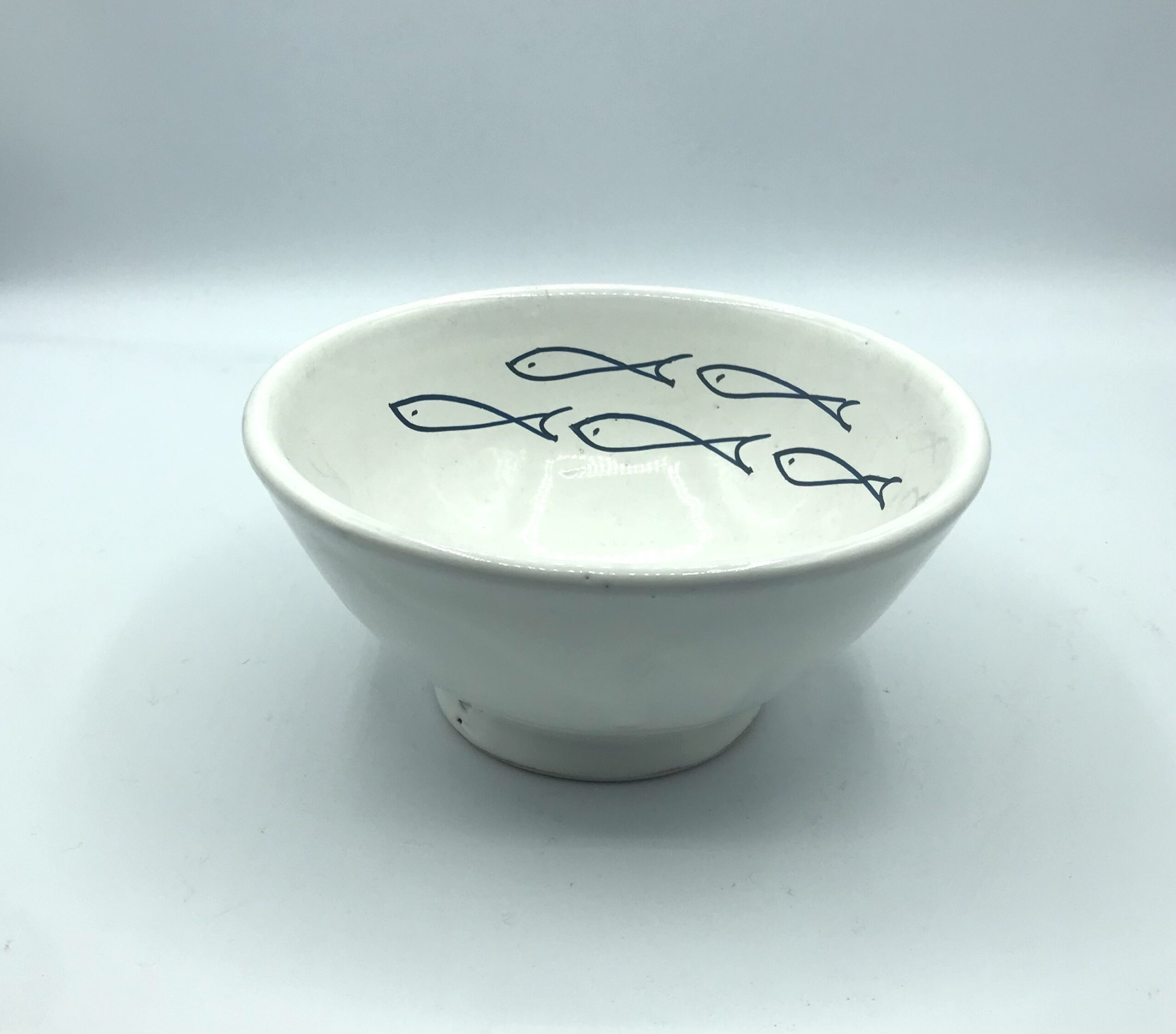 Ciotola realizzata artigianalmente in Marocco, dipinta a mano decorata con pesci di colore blu