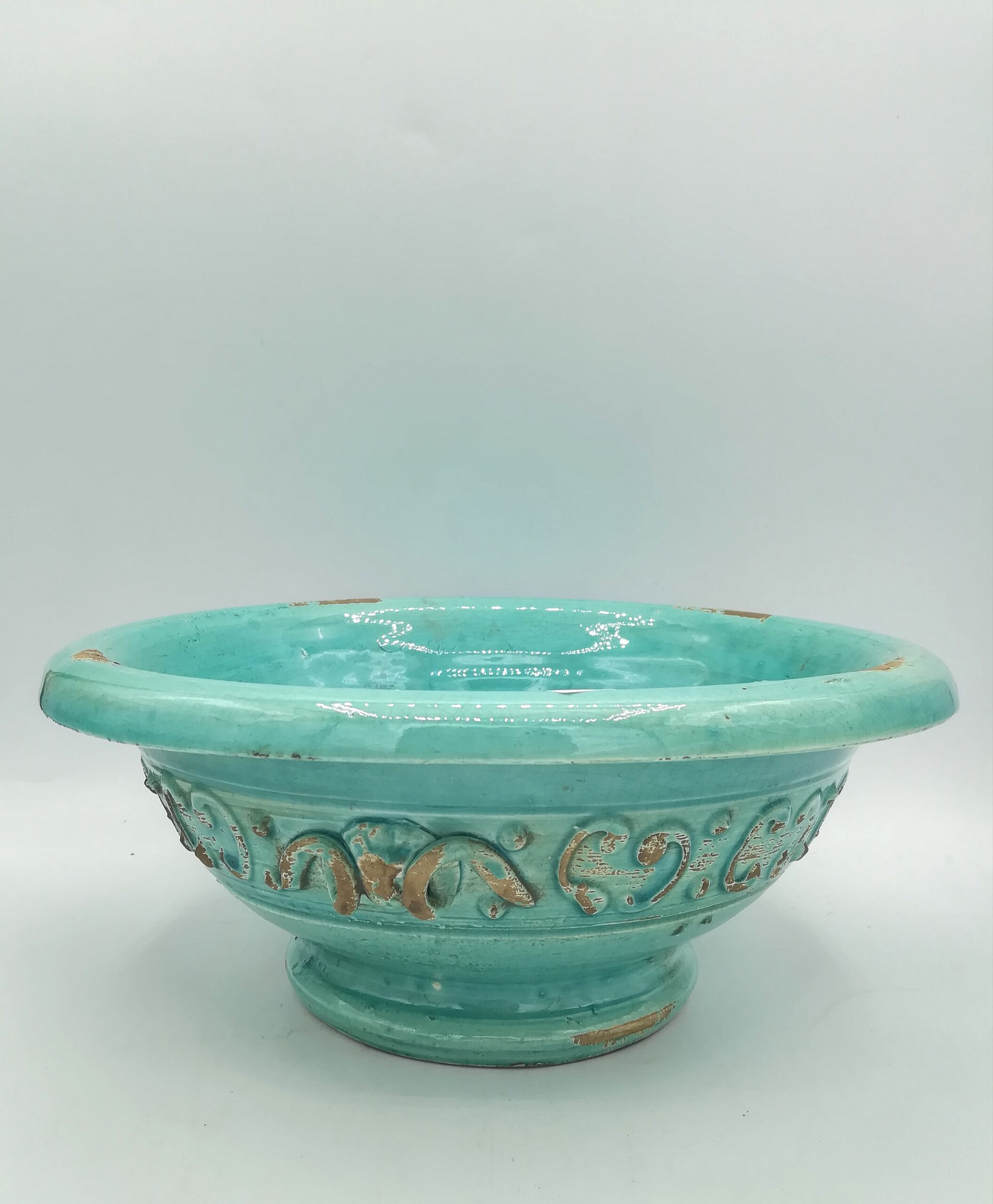 Ciotola in ceramica di Vietri dipinto e realizzato artigianalmente, color turchese