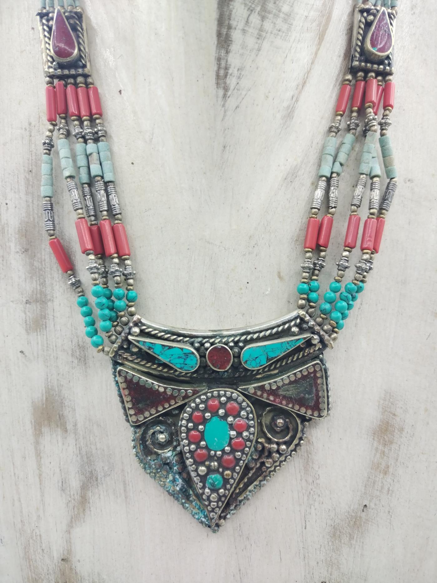 Collana prodotta artigianalmente in Marocco in argentone e pietre dure