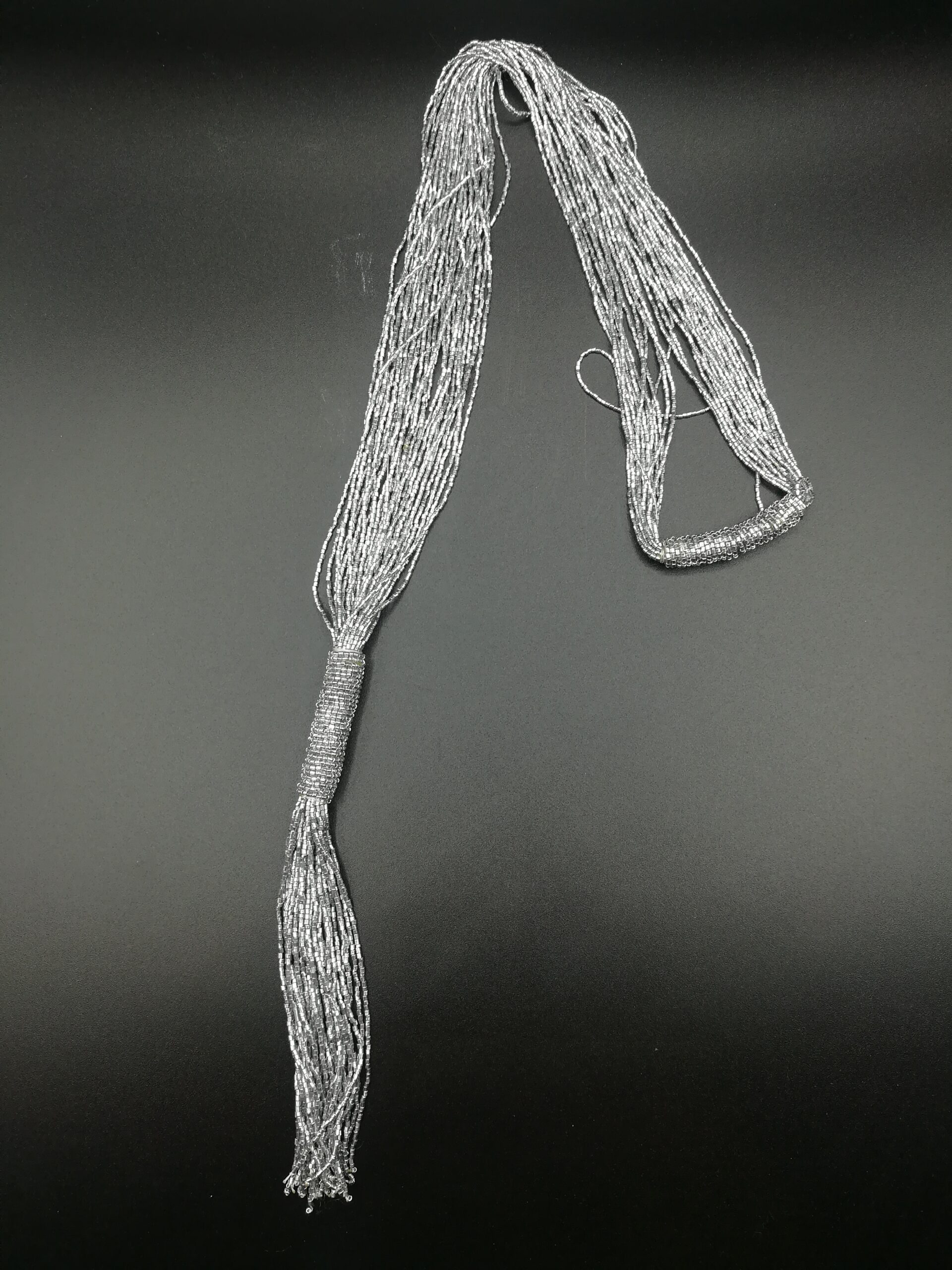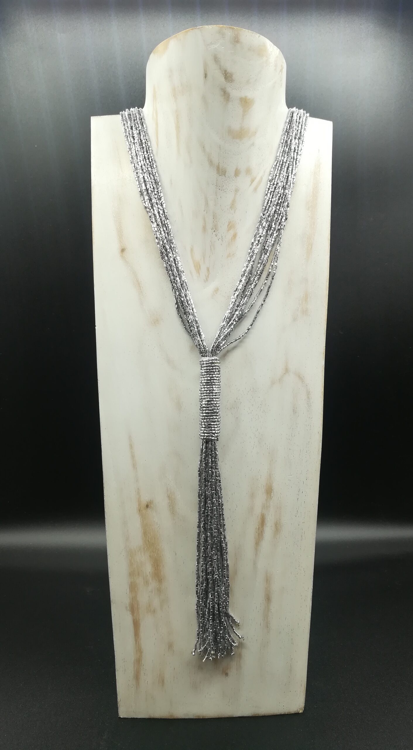 Collana lunga realizzata in India con fili di perline color argento