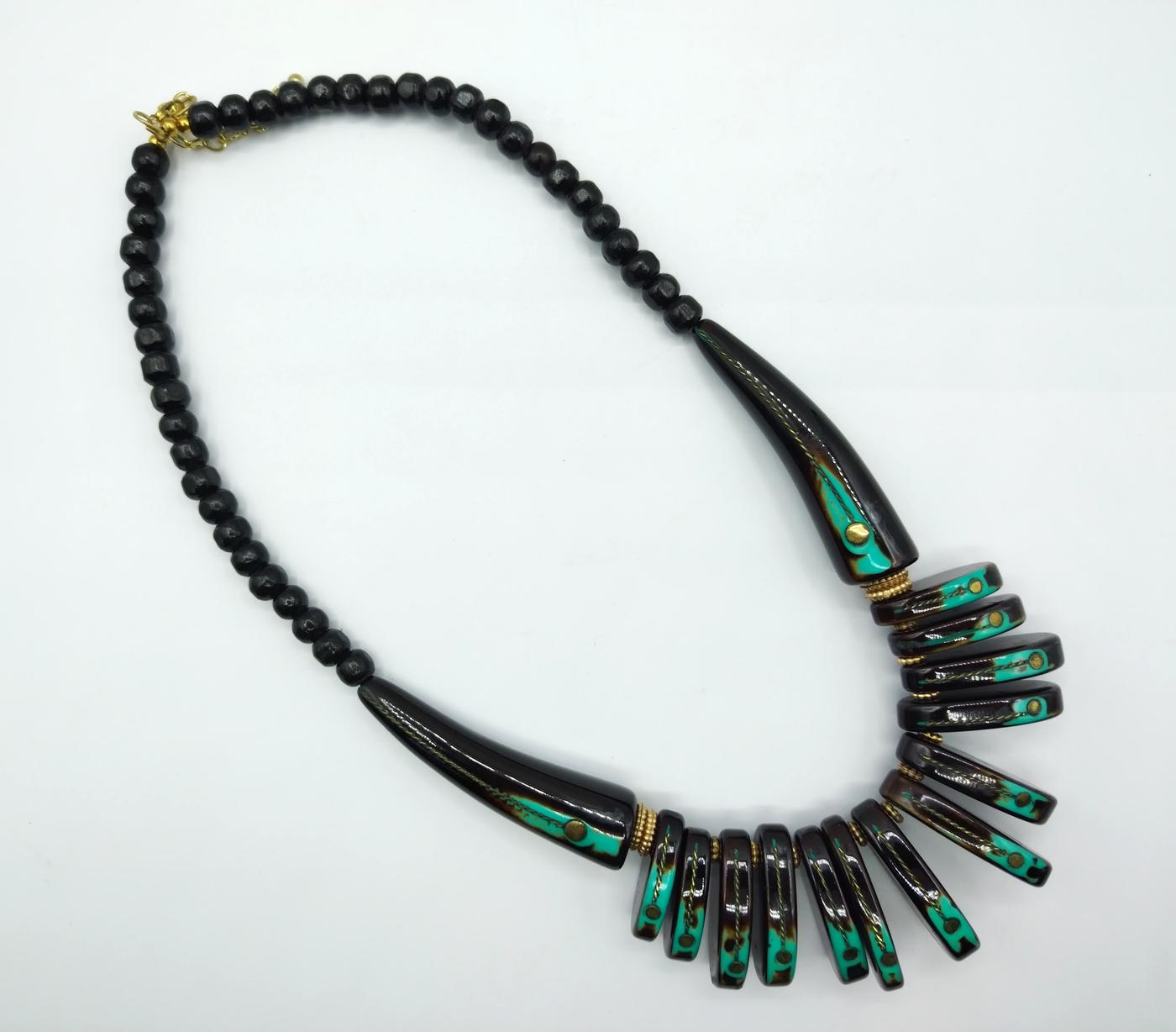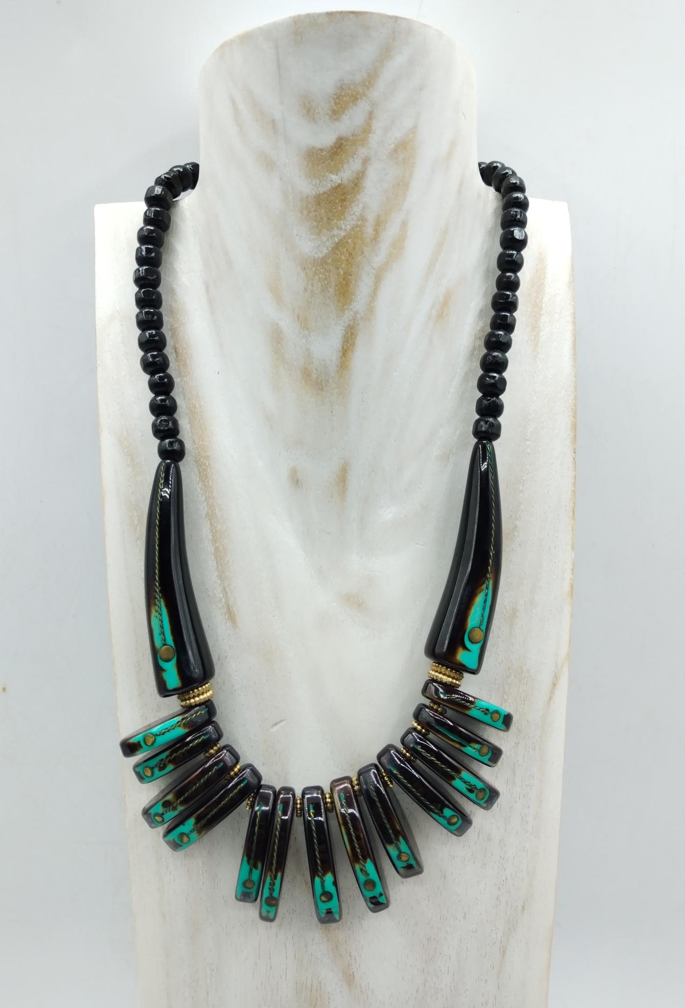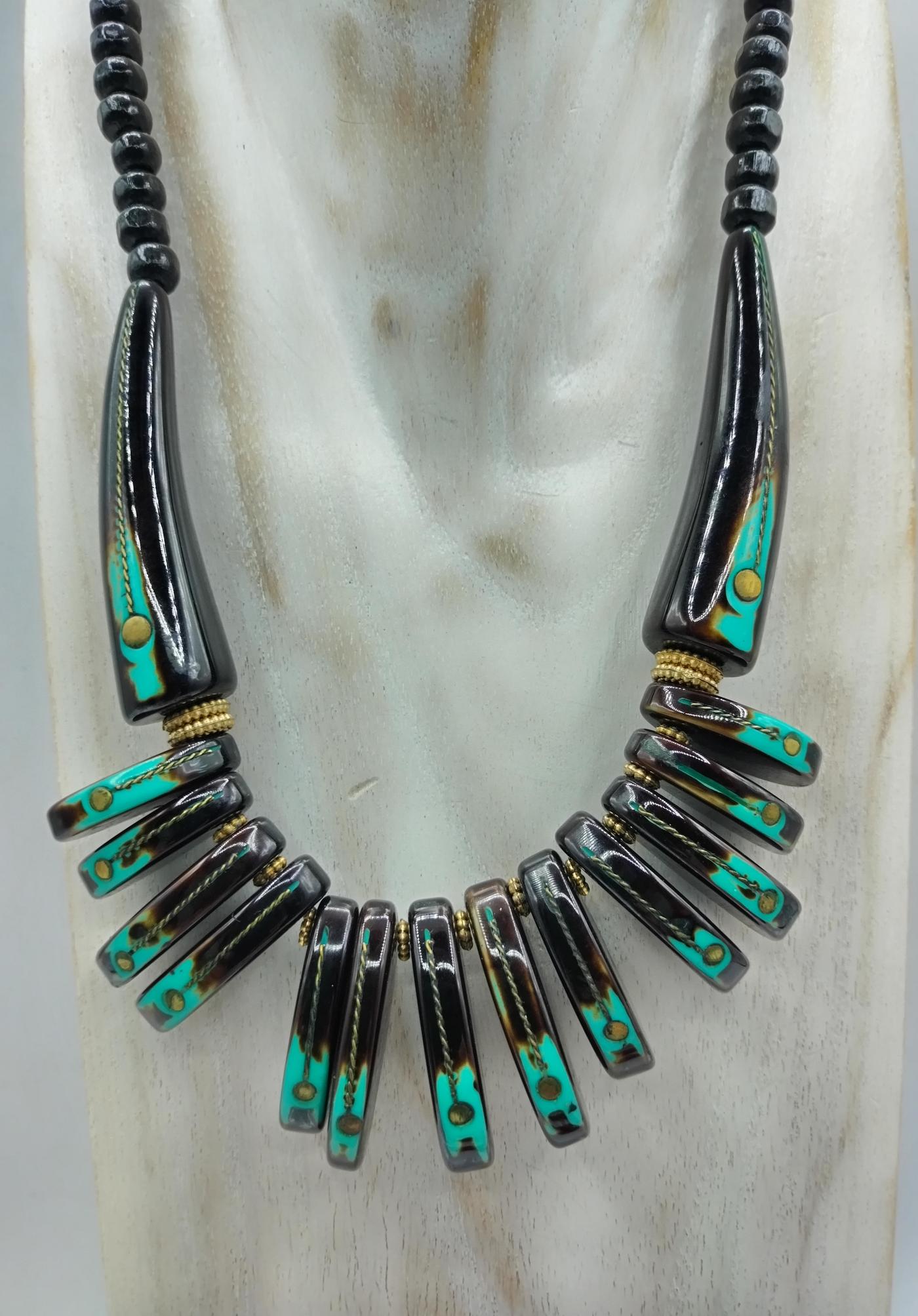 Collana prodotta artigianalmente in India realizzata con perline di resina e ottone