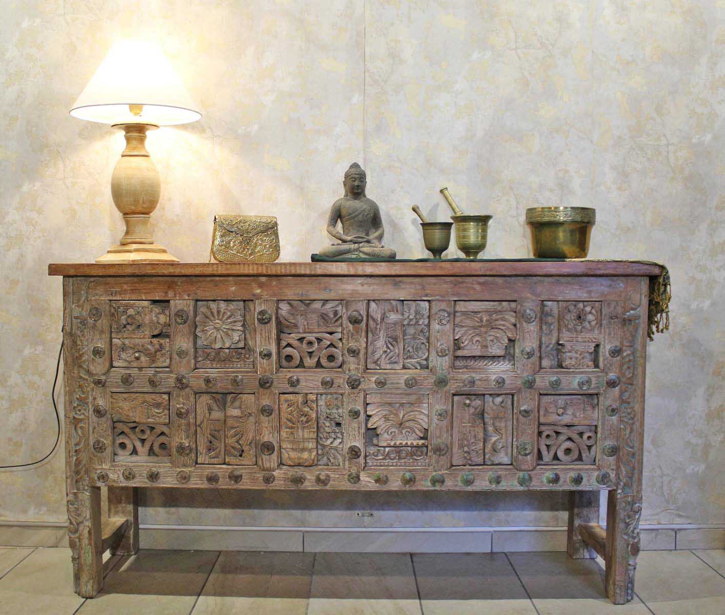 La consolle Lakshmi è un pezzo unico e scenografico, ideale per ambienti ricercati, etnici o contemporanei, capace di unire storia, artigianato e design in un arredo di forte personalità.