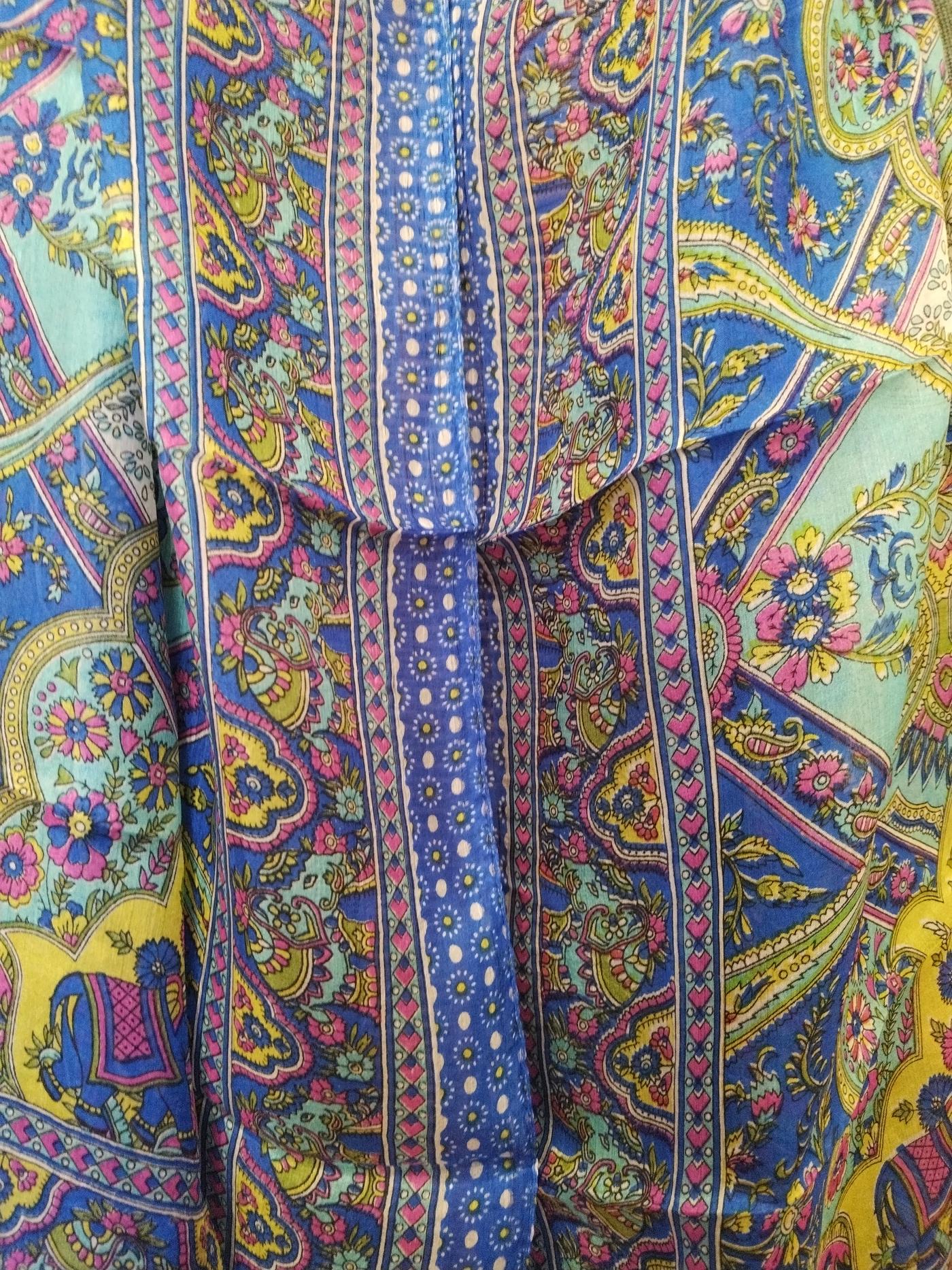 Foulard realizzato in India in seta color blu elettrico e disegni cachemire di vari colori