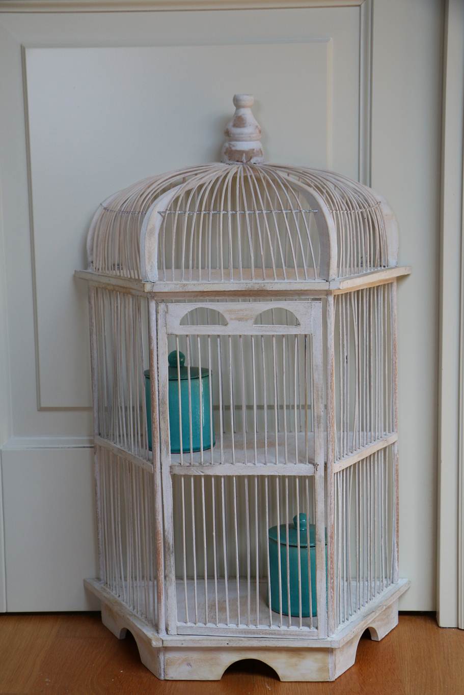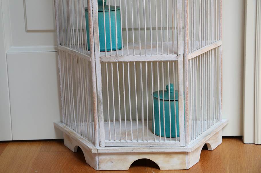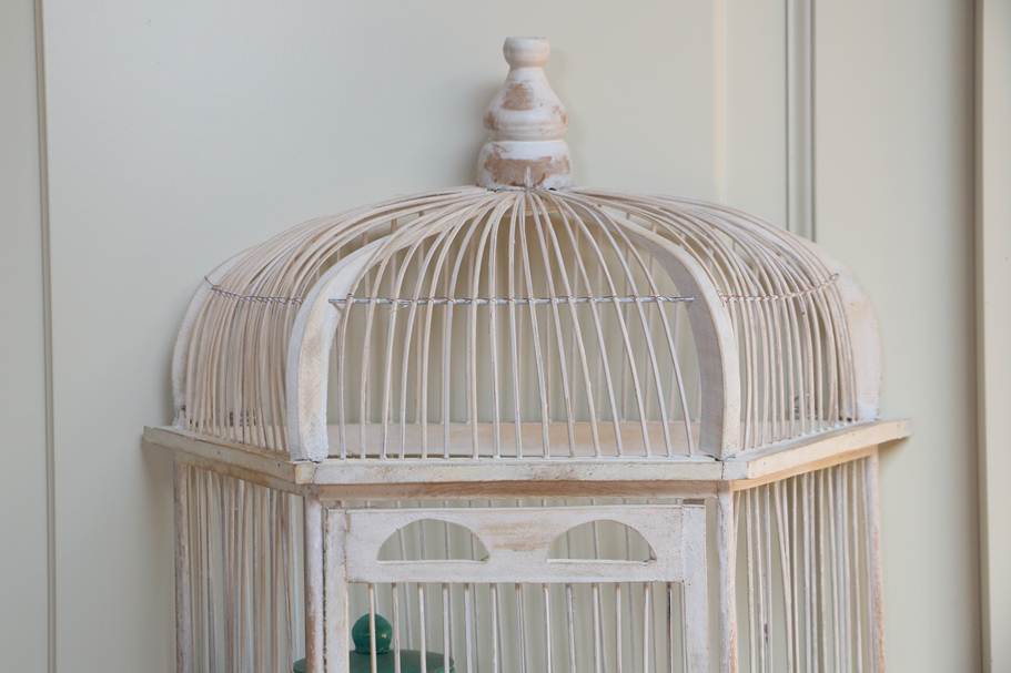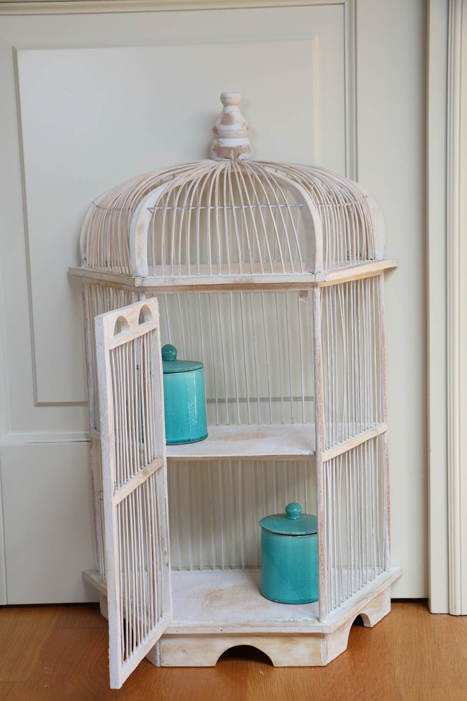 La Gabbia Lia è un elegante porta oggetti realizzato in legno dipinto di bianco, che unisce funzionalità e gusto decorativo in un unico complemento d’arredo.