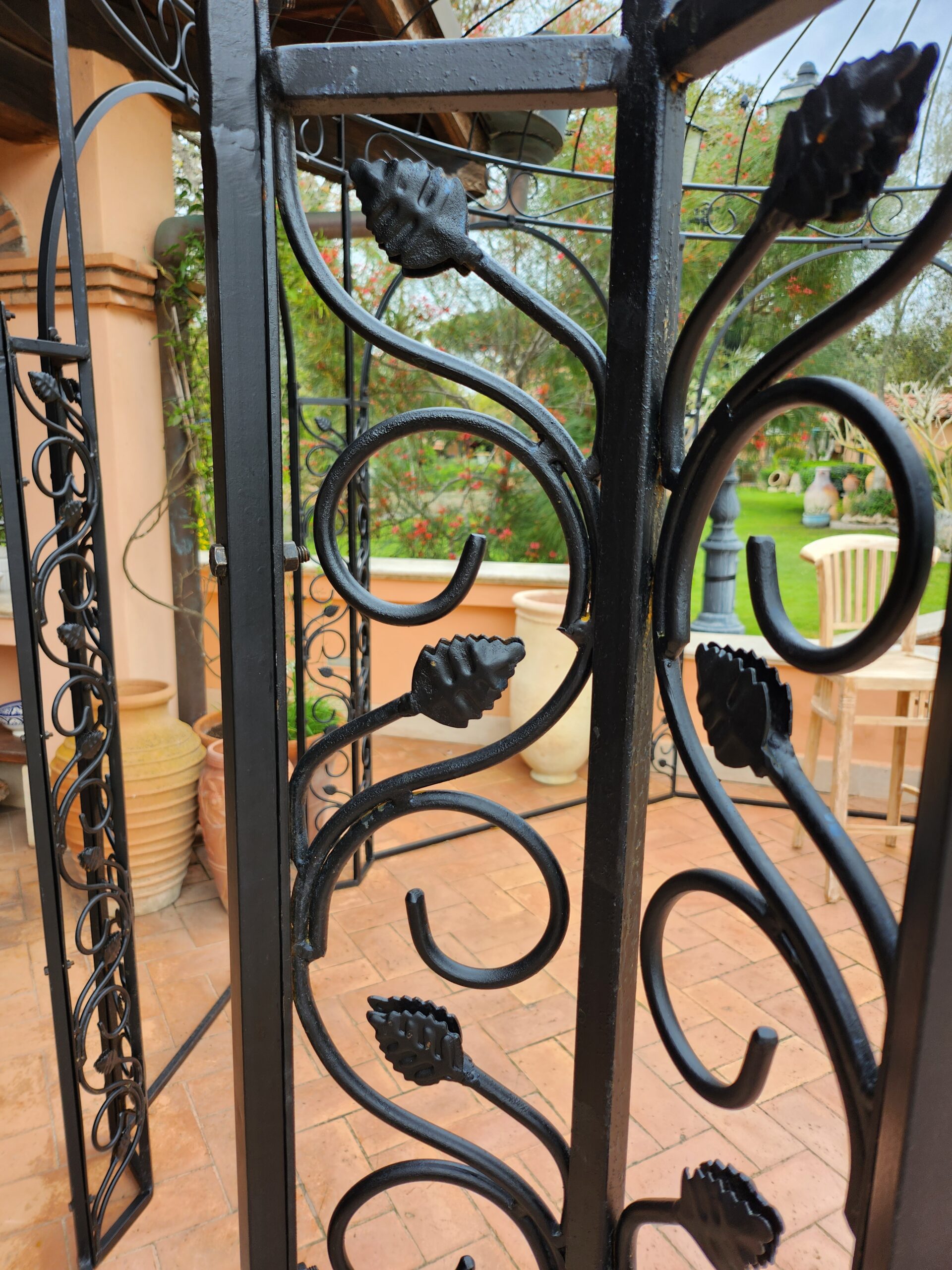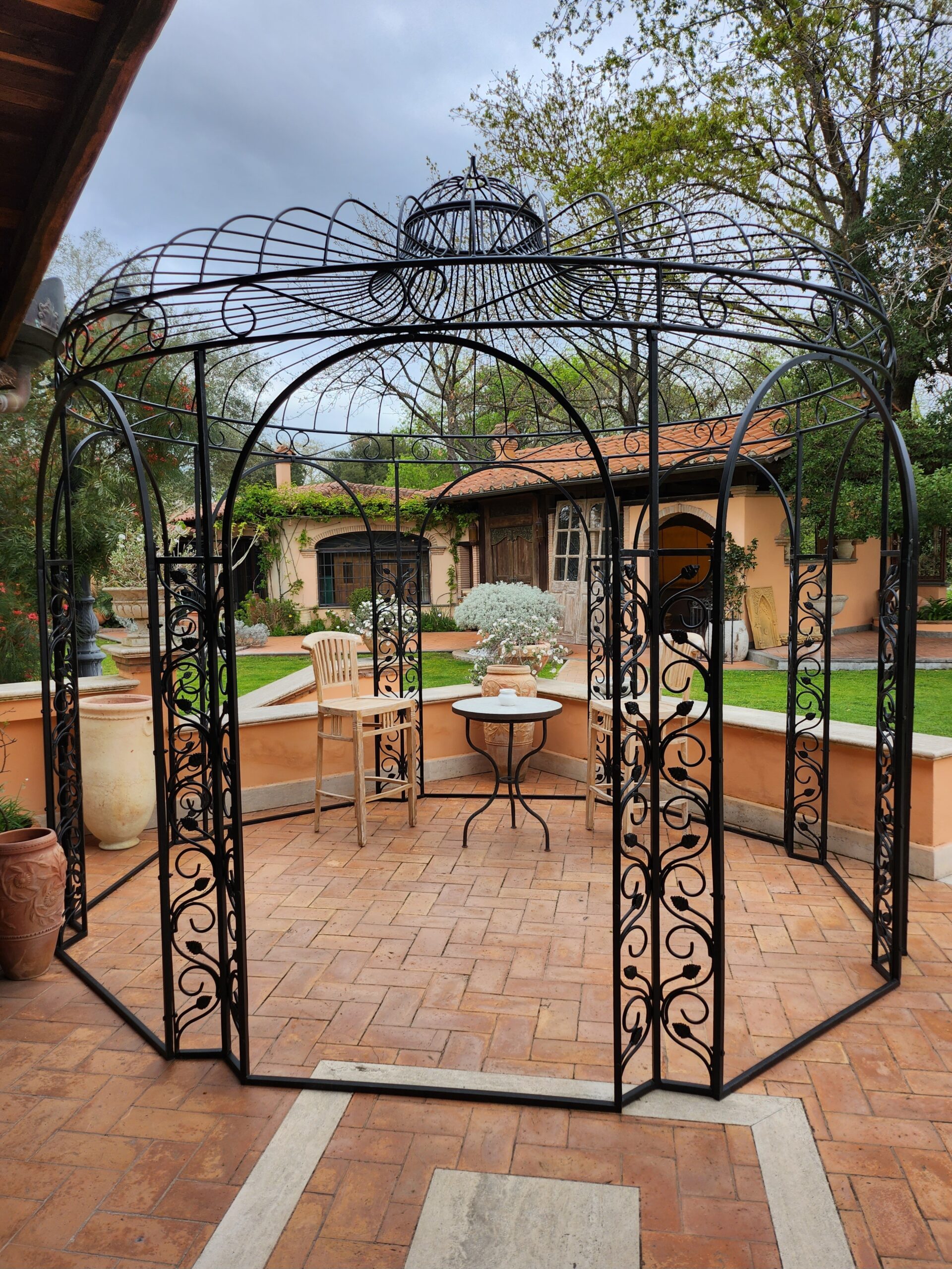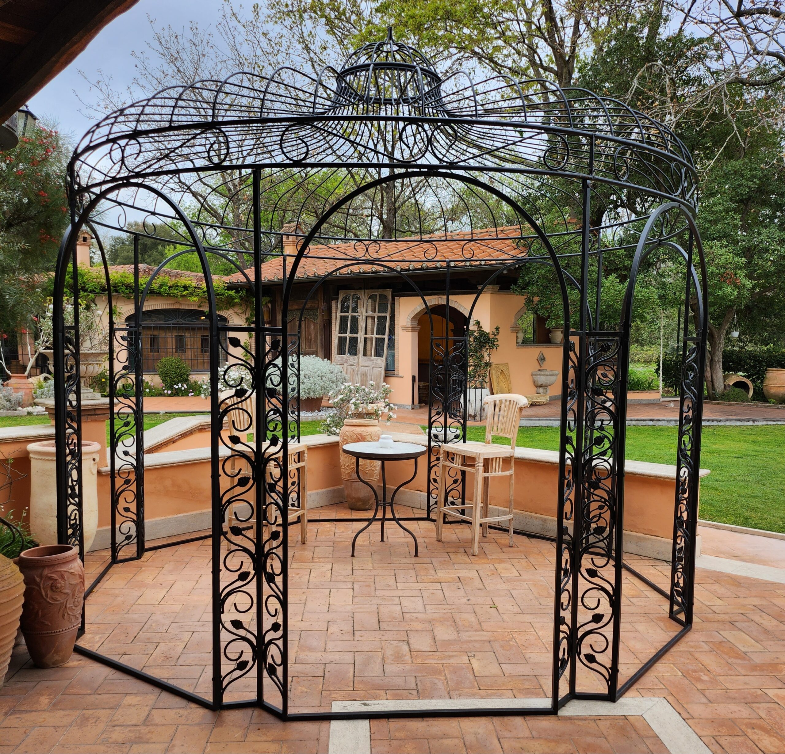 Il gazebo Indian è stato realizzato da artigiani indiani in ferro battuto, ha una struttura con otto arcate con ampie aperture, rifinite con ornamenti con motivi floreali che arricchiscono la linearità della struttura in ferro conferendogli un sapore esotico.