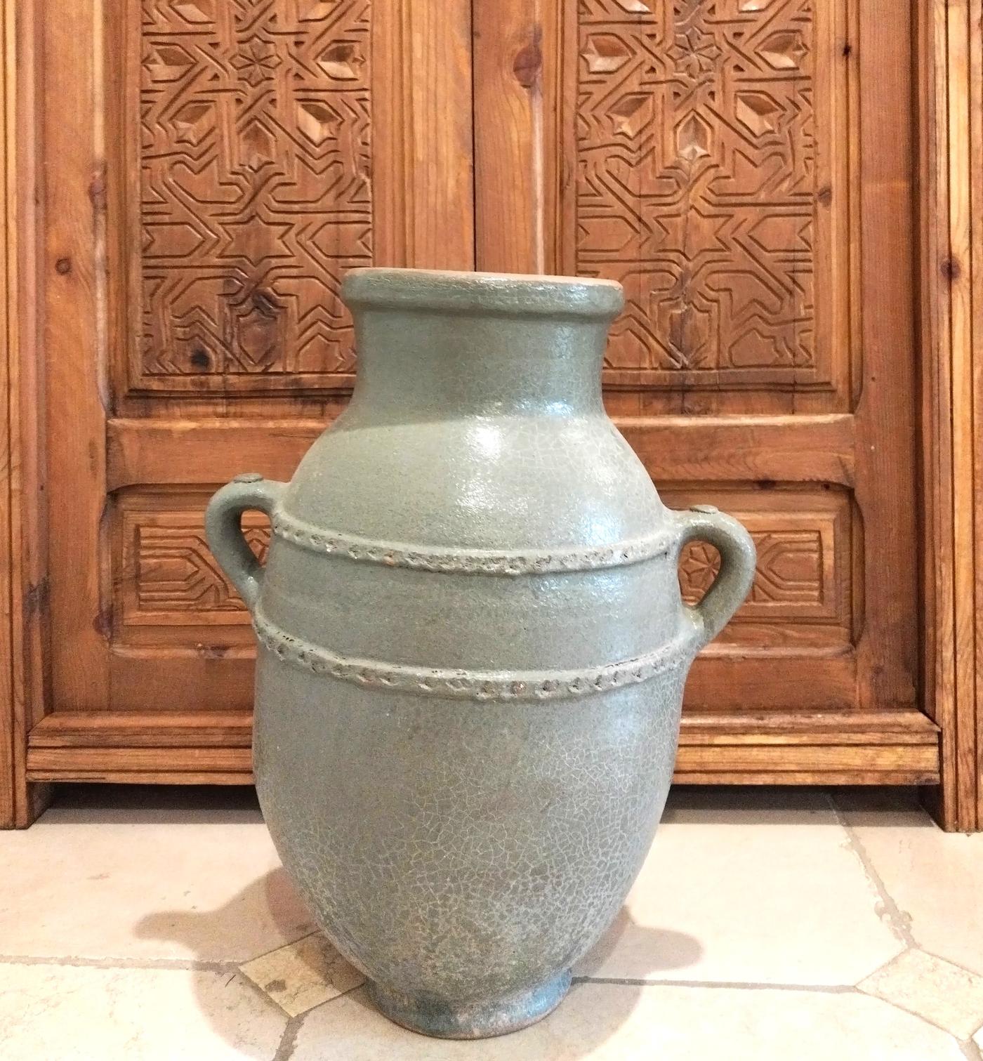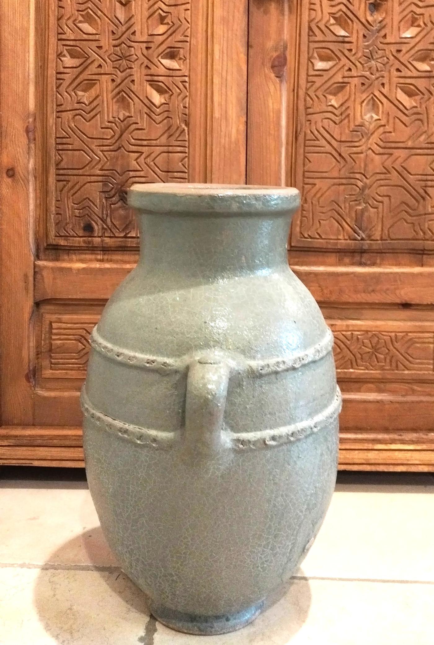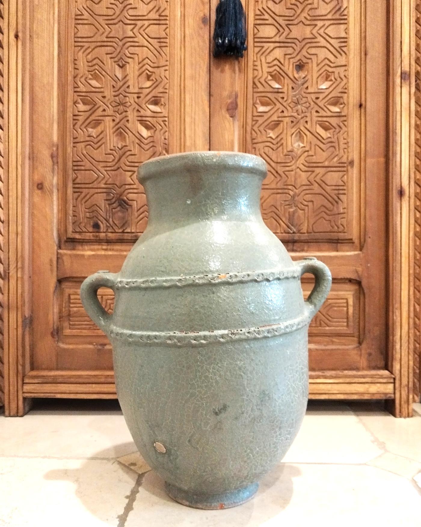 Giara smaltata grigia con manici realizzata artigianalmente in Marocco