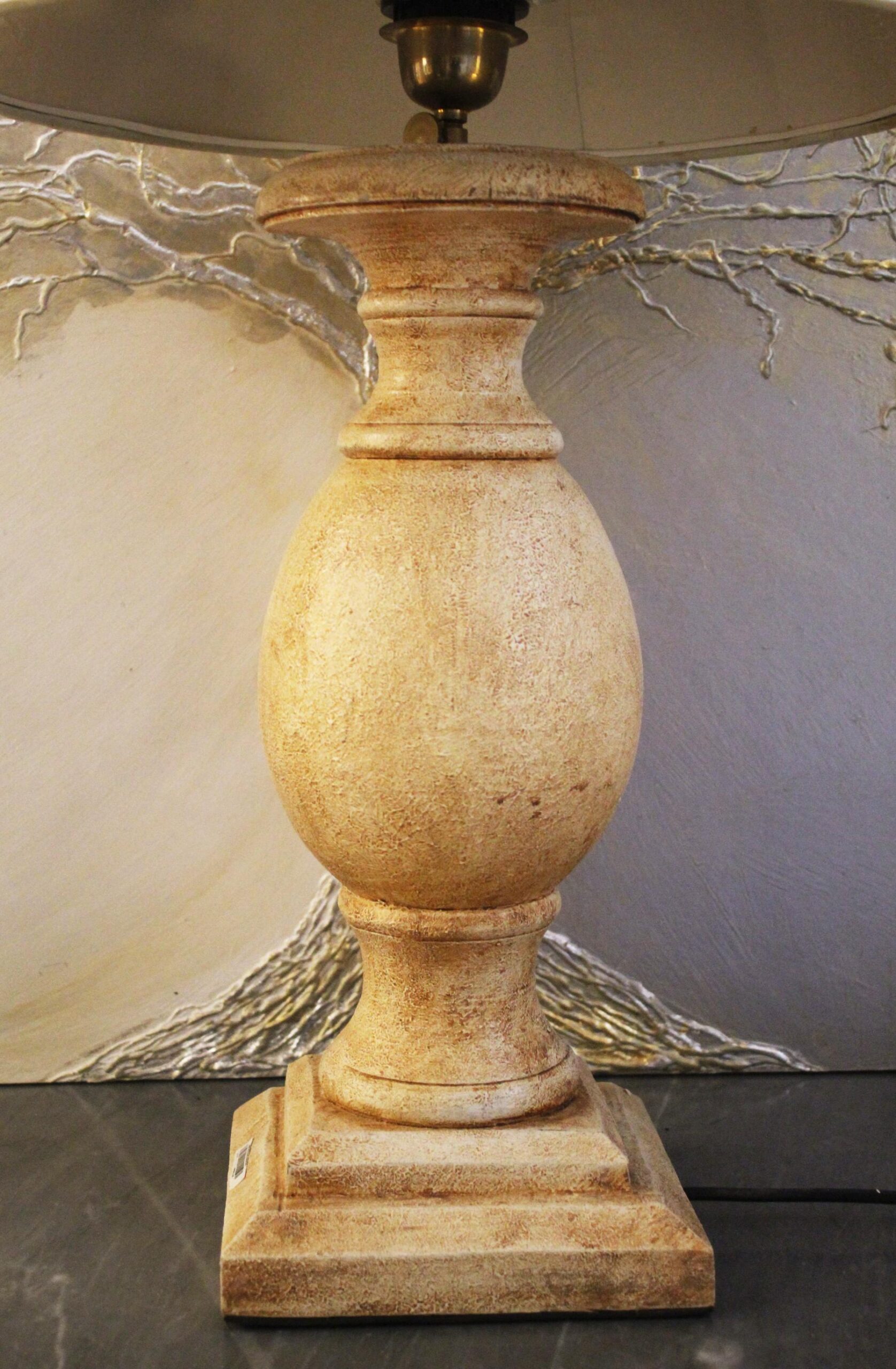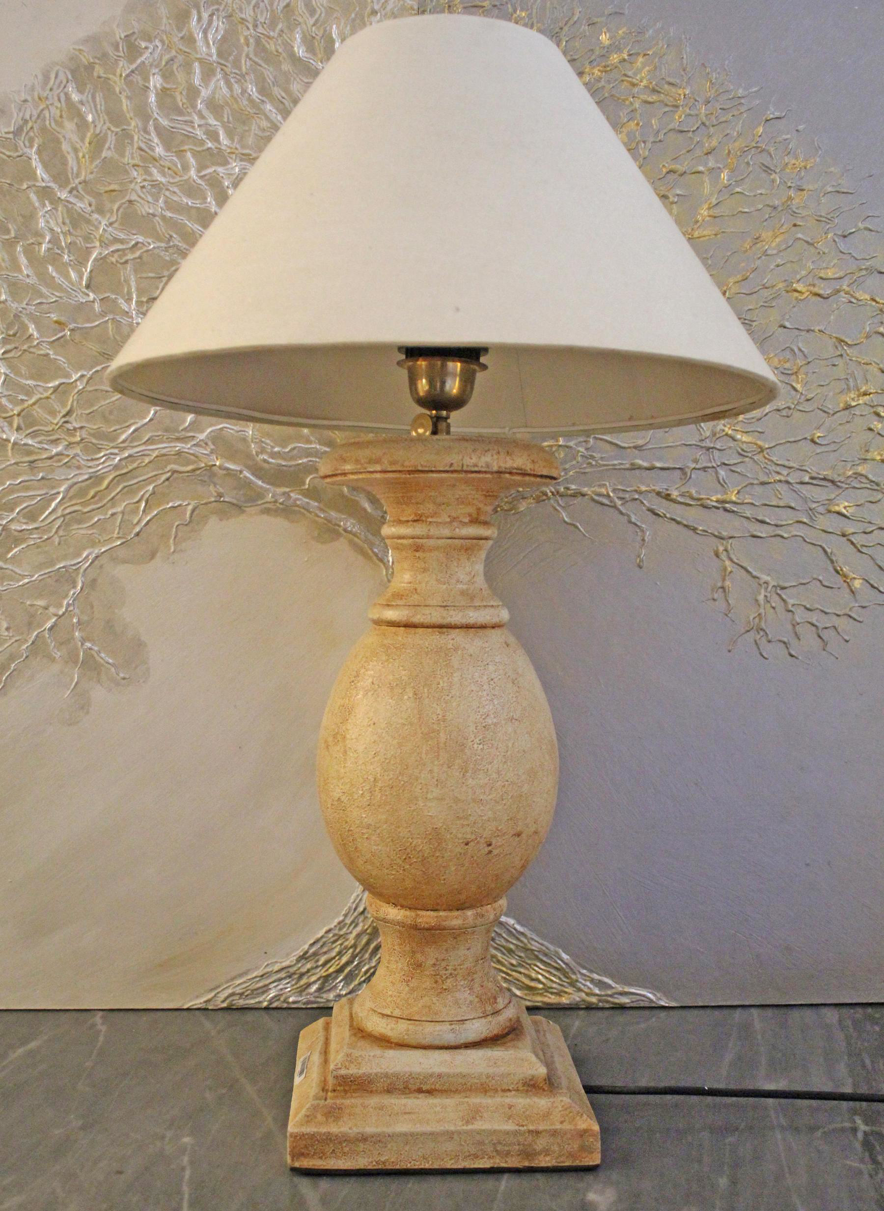 Lampada indonesiana in legno colore crema con paralume color panna.