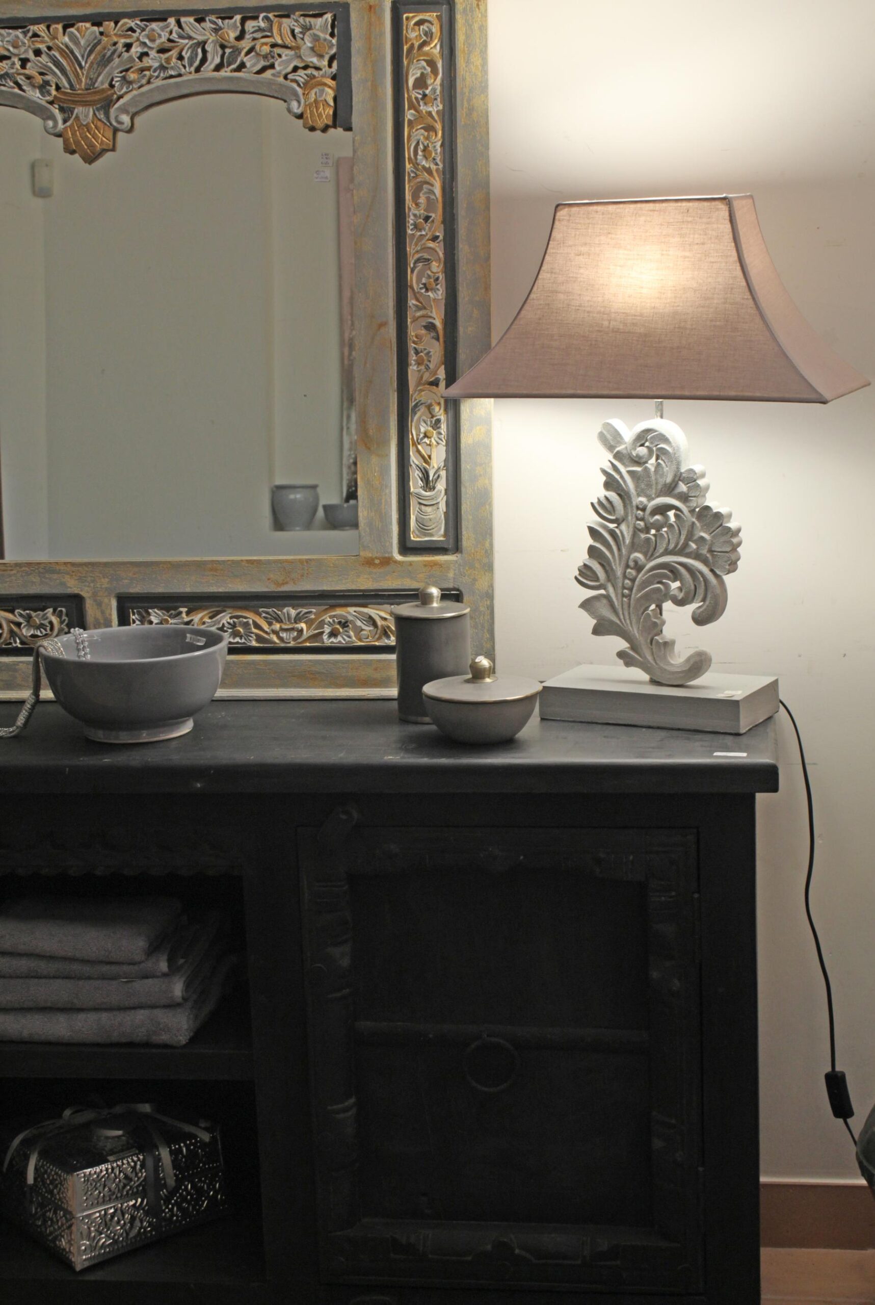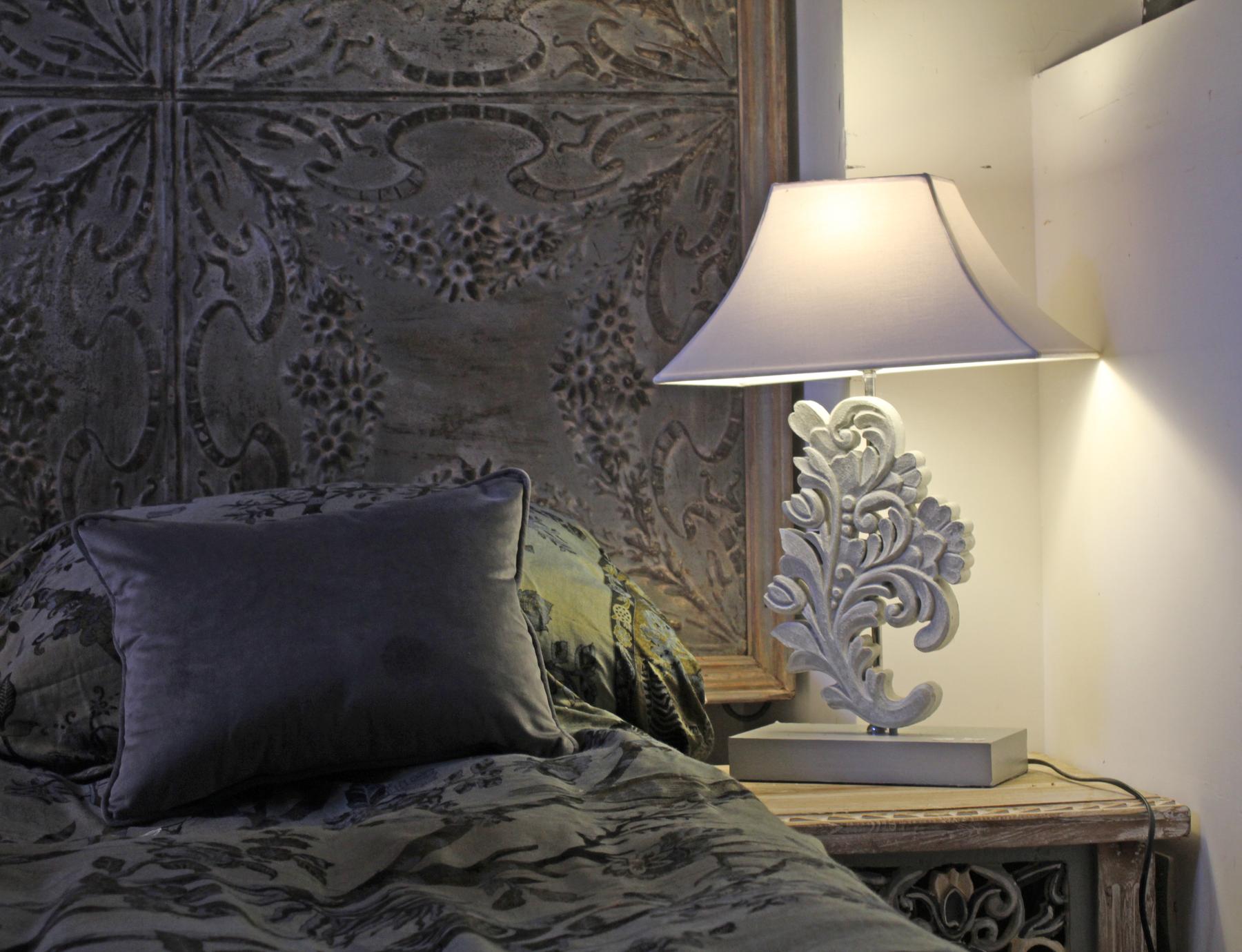 La lampada Lily è stata realizzata con un fregio in legno intagliato a mano da artigiani indonesiani.