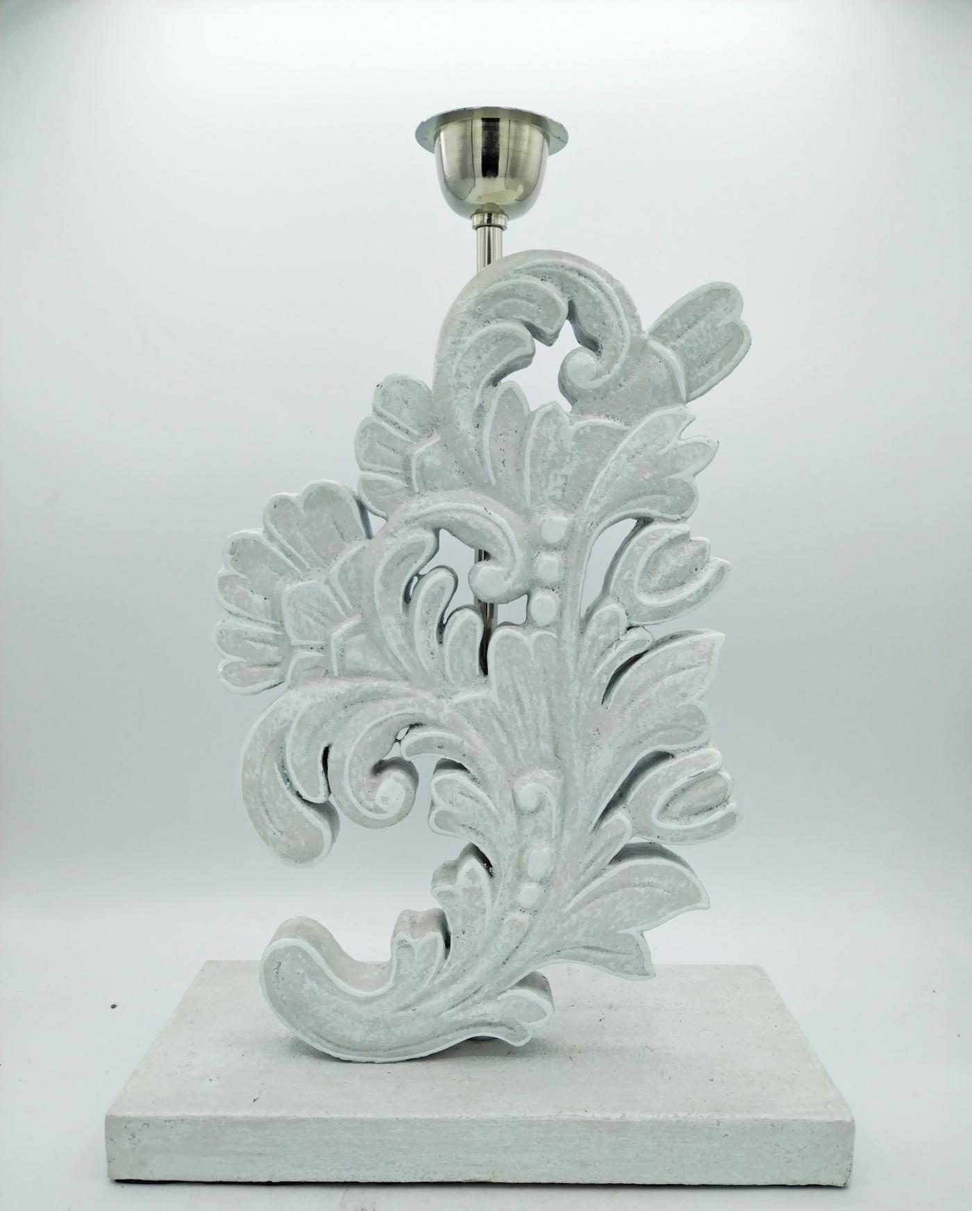 Lampada indonesiana intagliata in legno a forma di foglia color grigio