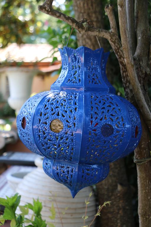 Il lampadario Majorelle Blue, appeso al soffitto di un locale in stile orientale, in una camera originale della vostra casa o su  un patio immersa nel verde, creerà meravigliose ombre sulle pareti e sul soffitto ricreando per i vostri ospiti un’atmosfera accogliente e romantica.