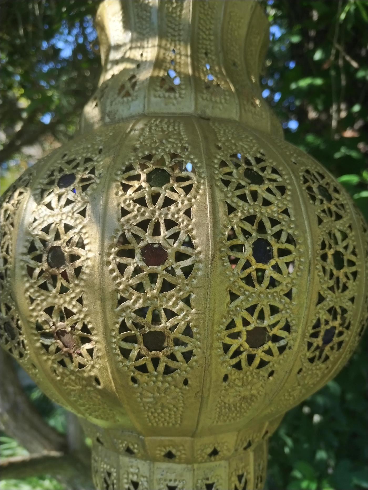 Il lampadario Yassine, appeso al soffitto di un locale in stile orientale, in una camera originale della vostra casa o su un patio immerso nel verde, creerà meravigliose ombre sulle pareti e sul soffitto in un’atmosfera accogliente e romantica.