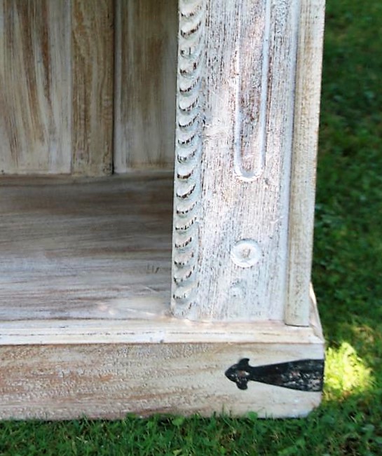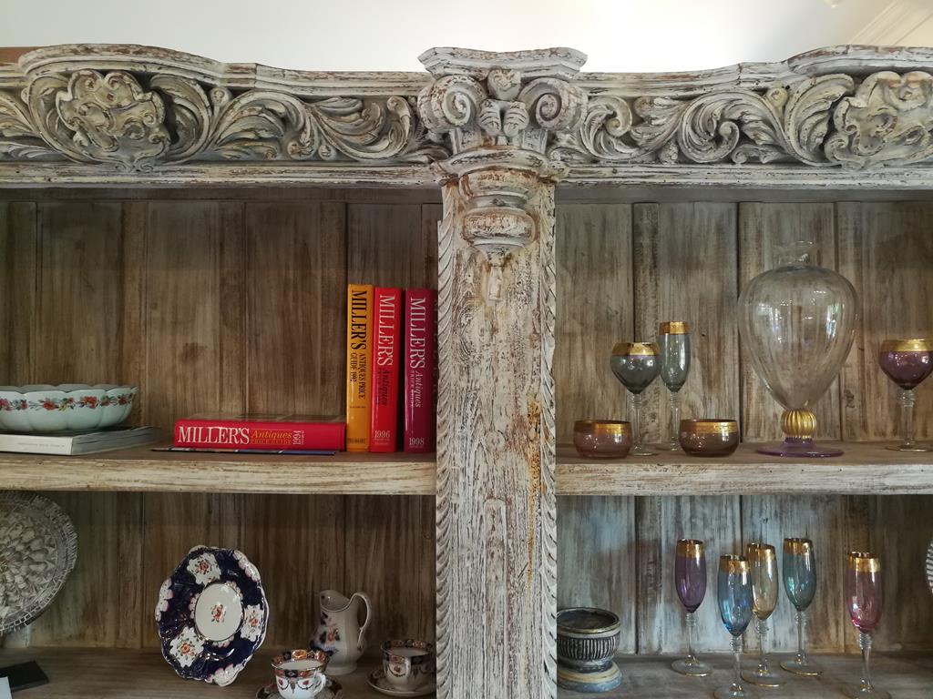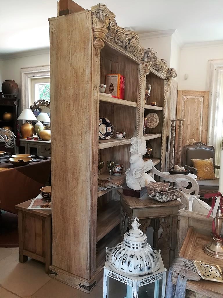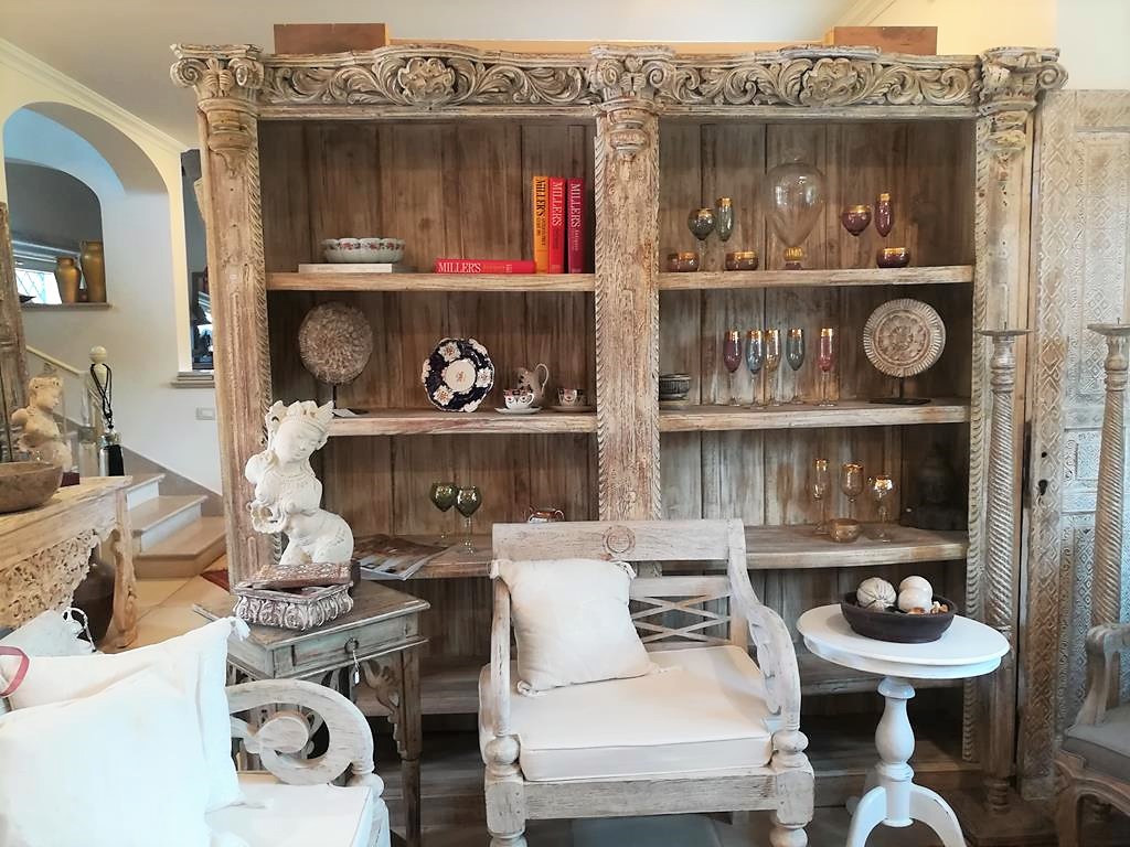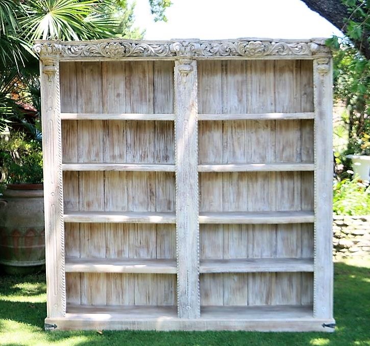 La libreria Dakota è realizzata in India da artigiani locali. Ha una struttura imponente, realizzata in legno di teak decapato color crema, che le conferisce solidità e durabilità nel tempo.