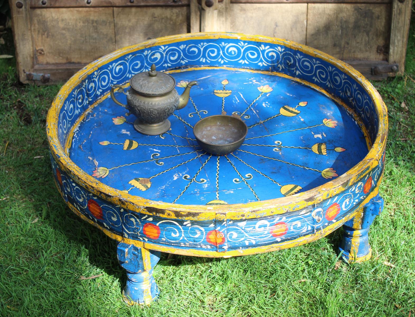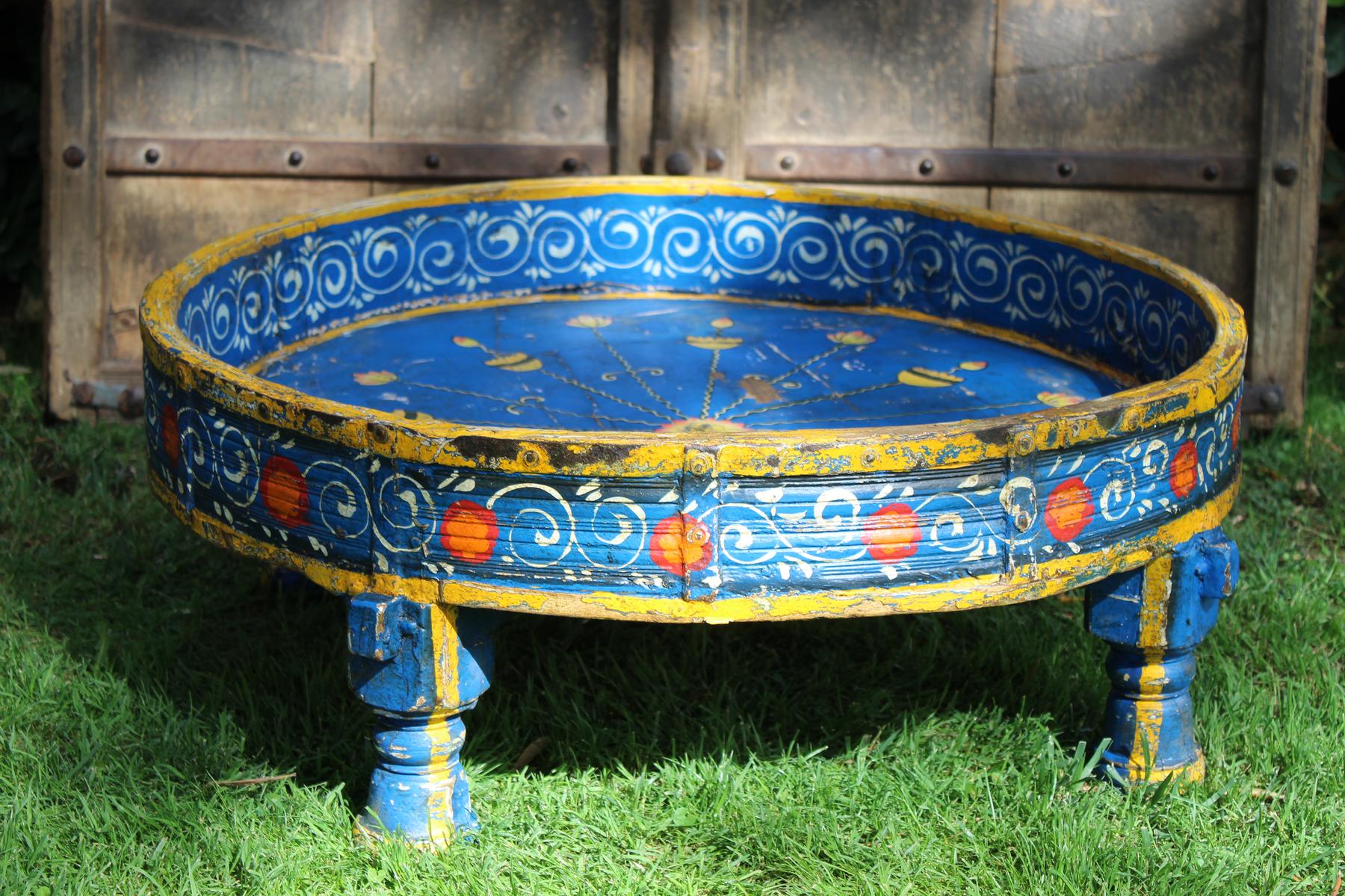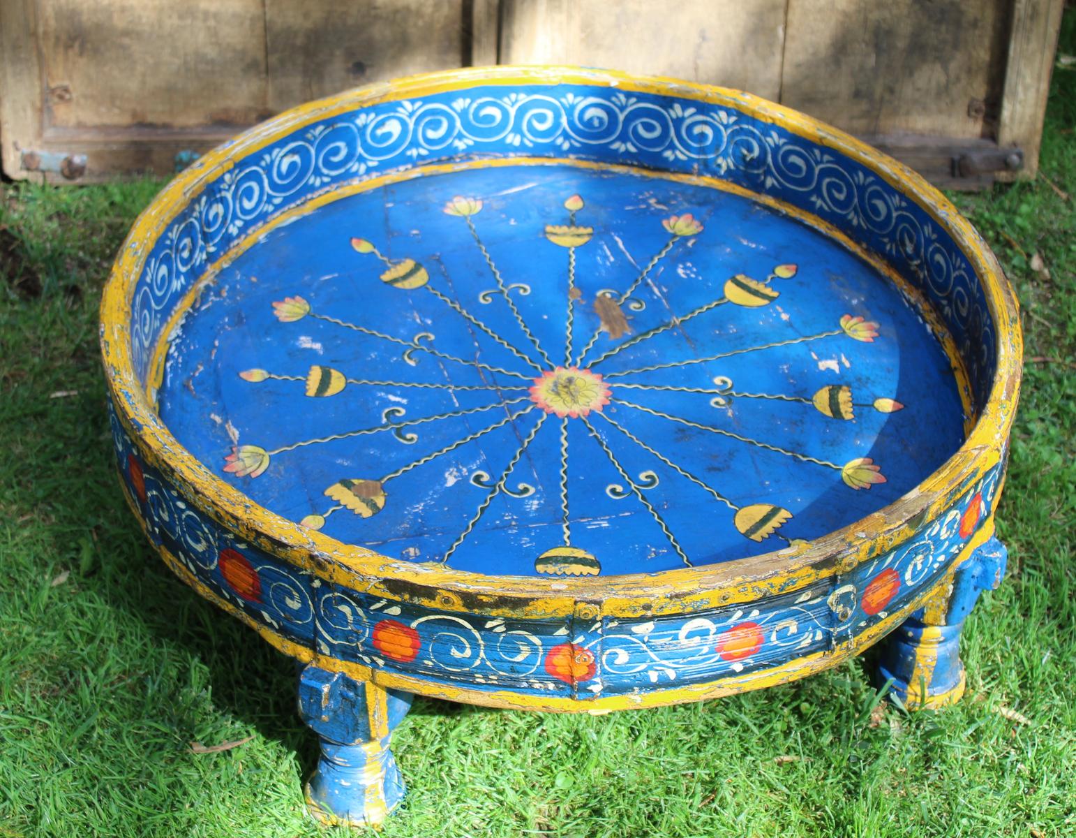 Macina d’antiquariato indiano in legno dipinto in vari colori
