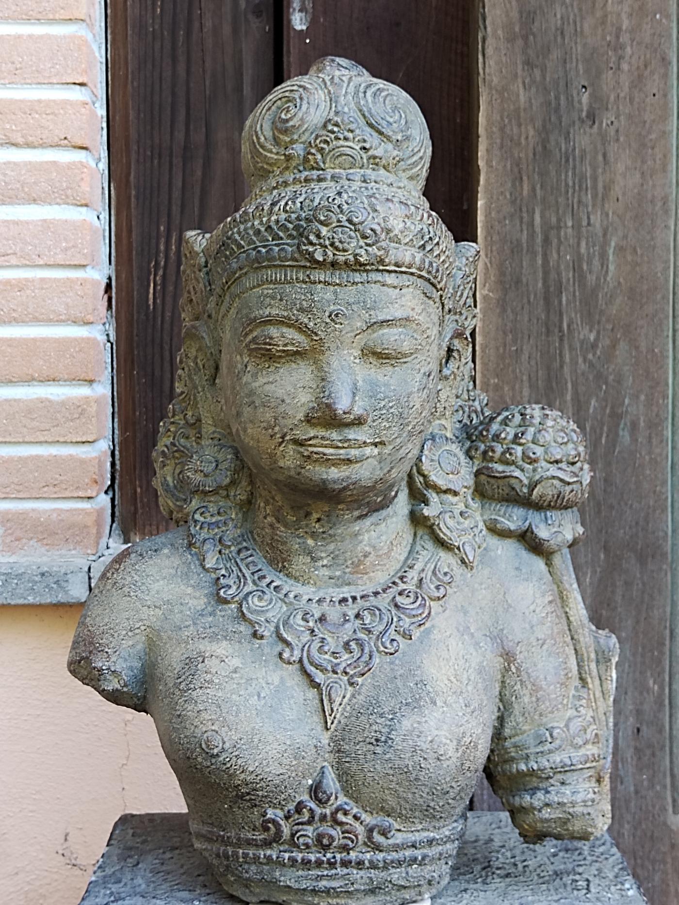 Mezzobusto divinità femminile Indonesiana realizzate in Indonesia in pietra vulcanica mista a cemento
