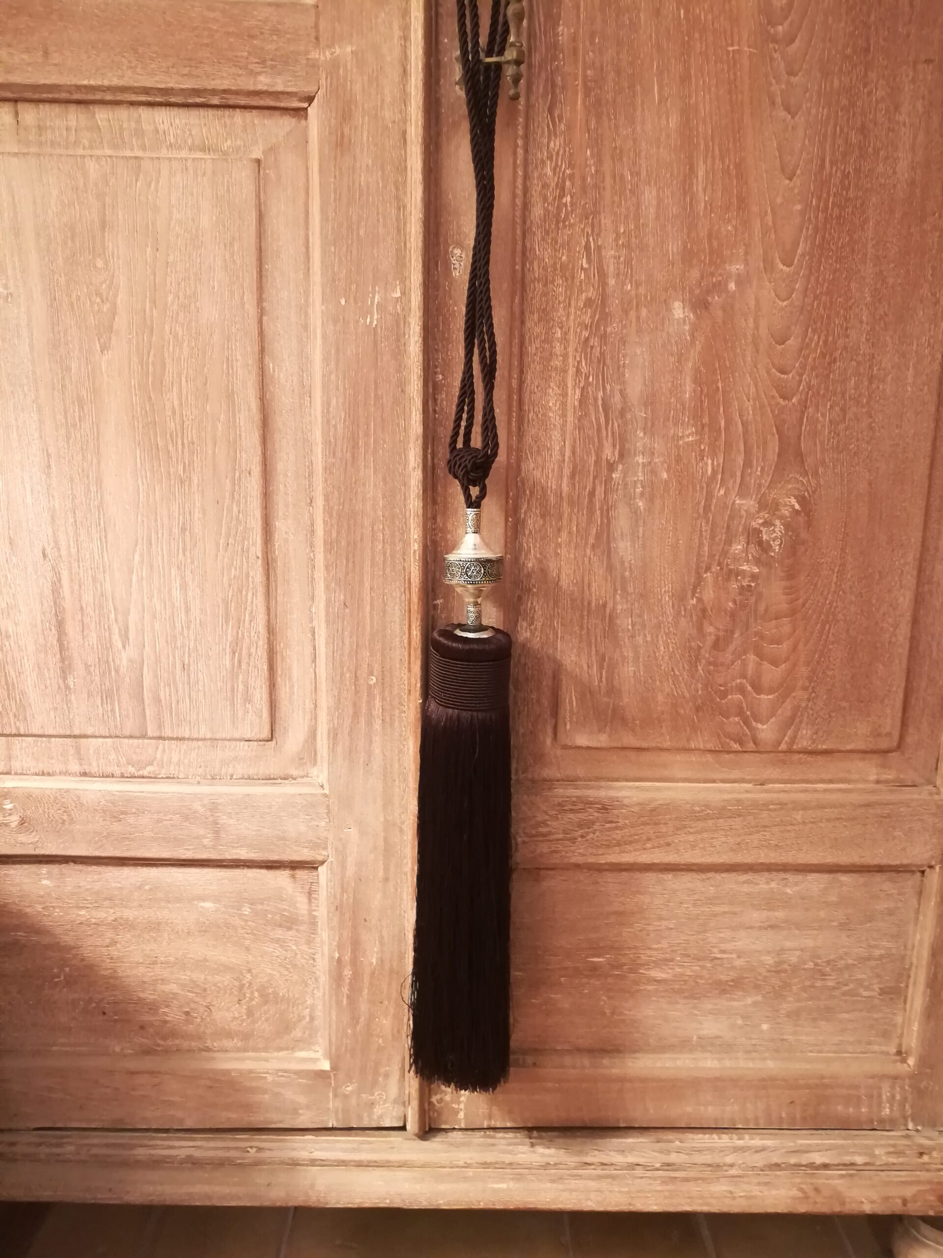 La nappa Amina è un accessorio decorativo che unisce la tradizione artigianale marocchina con un’estetica moderna e raffinata, perfetta per abbellire tende e tessuti d’arredo in modo elegante e discreto.