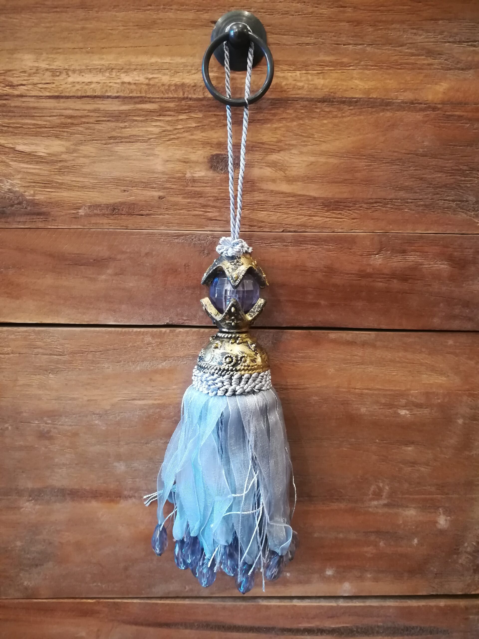 La nappa Latifah è un elegante accessorio decorativo realizzato artigianalmente in Marocco, pensata per abbellire tende, maniglie o cassetti.