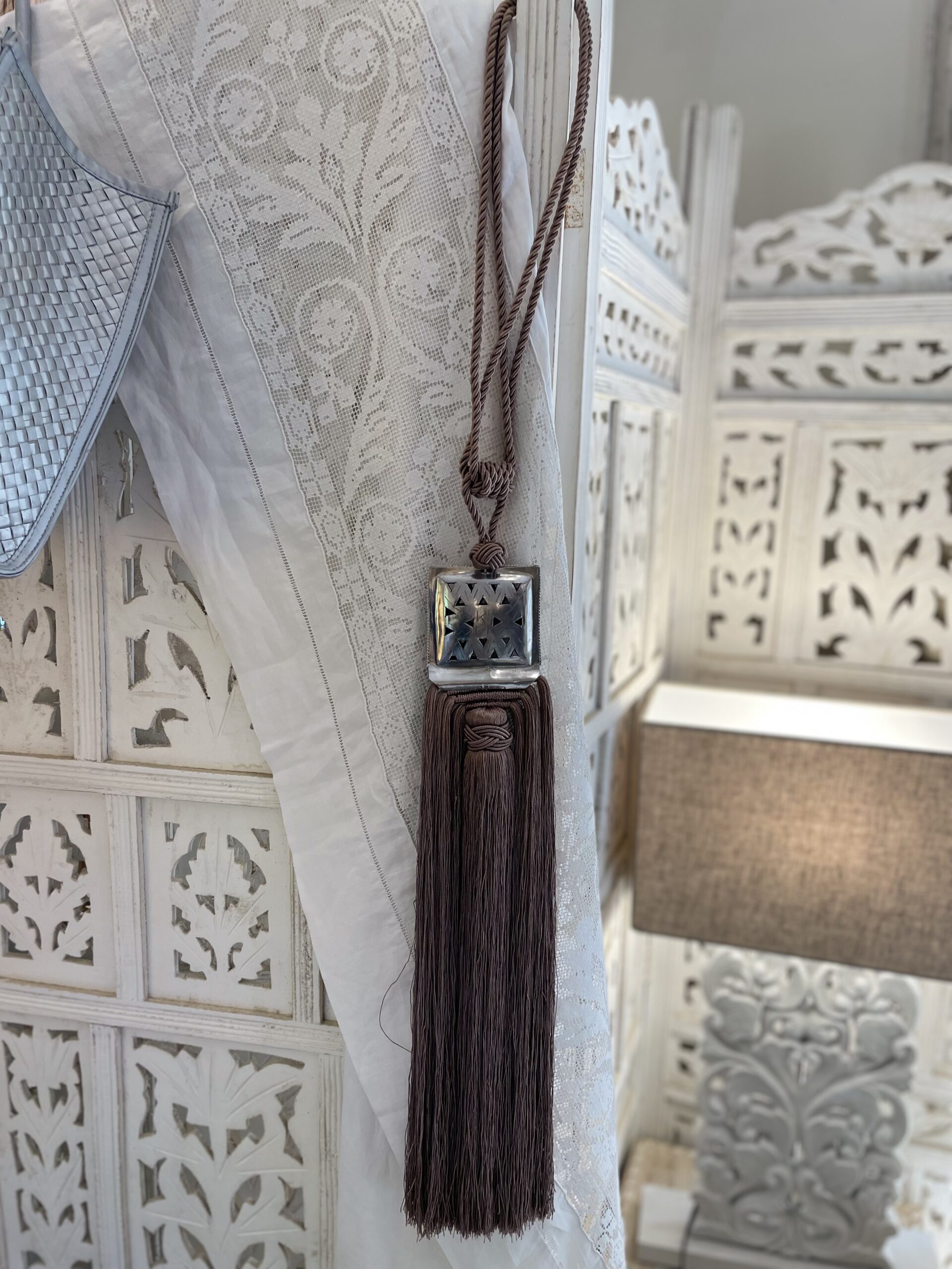 La nappa Malika è un accessorio decorativo che unisce la tradizione artigianale marocchina con un’estetica moderna e raffinata, perfetta per abbellire tende e tessuti d’arredo in modo elegante e discreto.