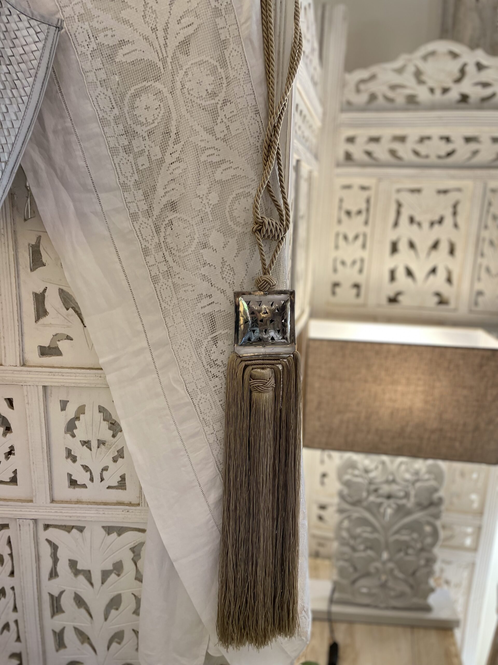 La nappa Malika è un accessorio decorativo che unisce la tradizione artigianale marocchina con un’estetica moderna e raffinata, perfetta per abbellire tende e tessuti d’arredo in modo elegante e discreto.