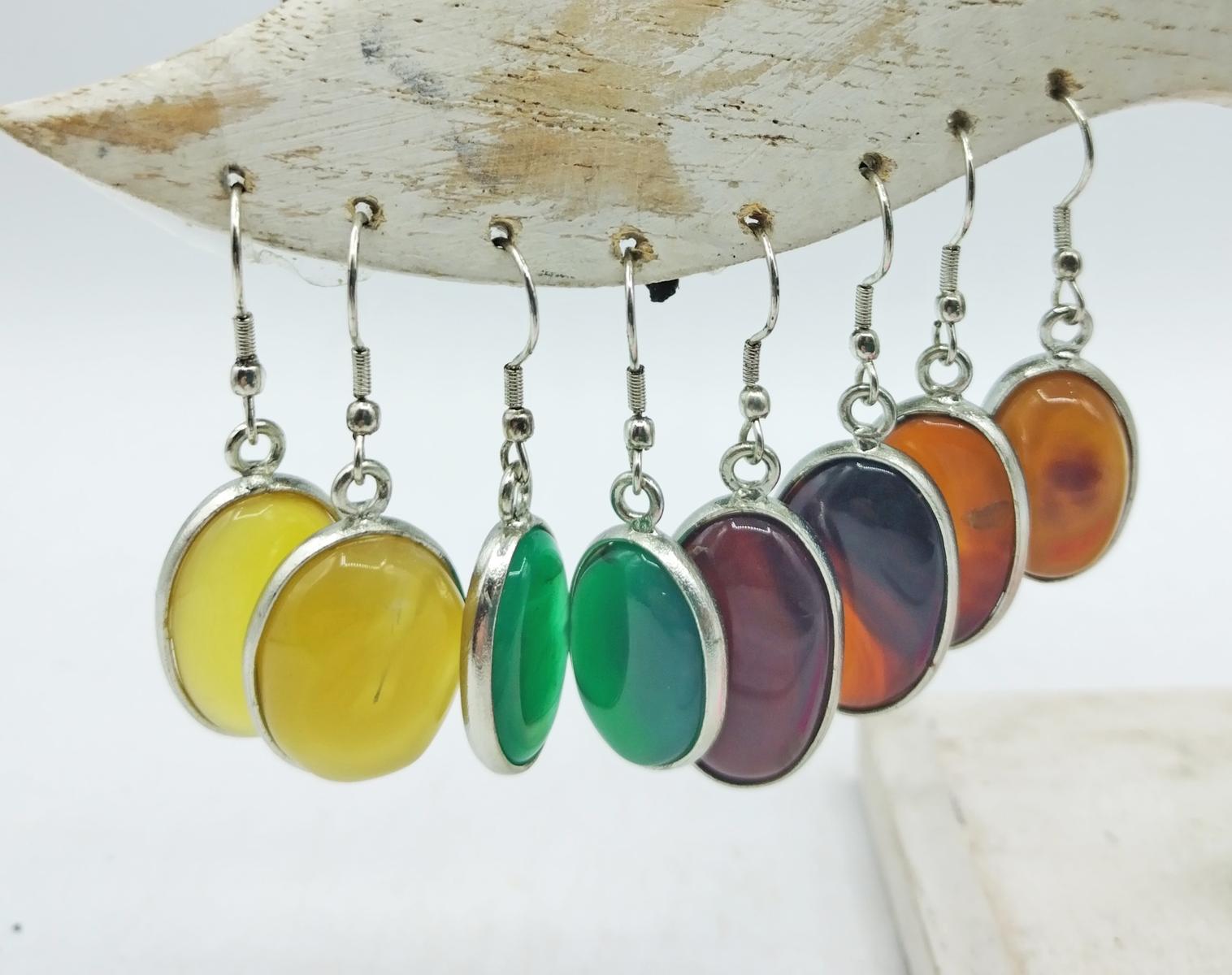 Orecchini pendenti realizzati artigianalmente in India con metallo argentato e diverse pietre