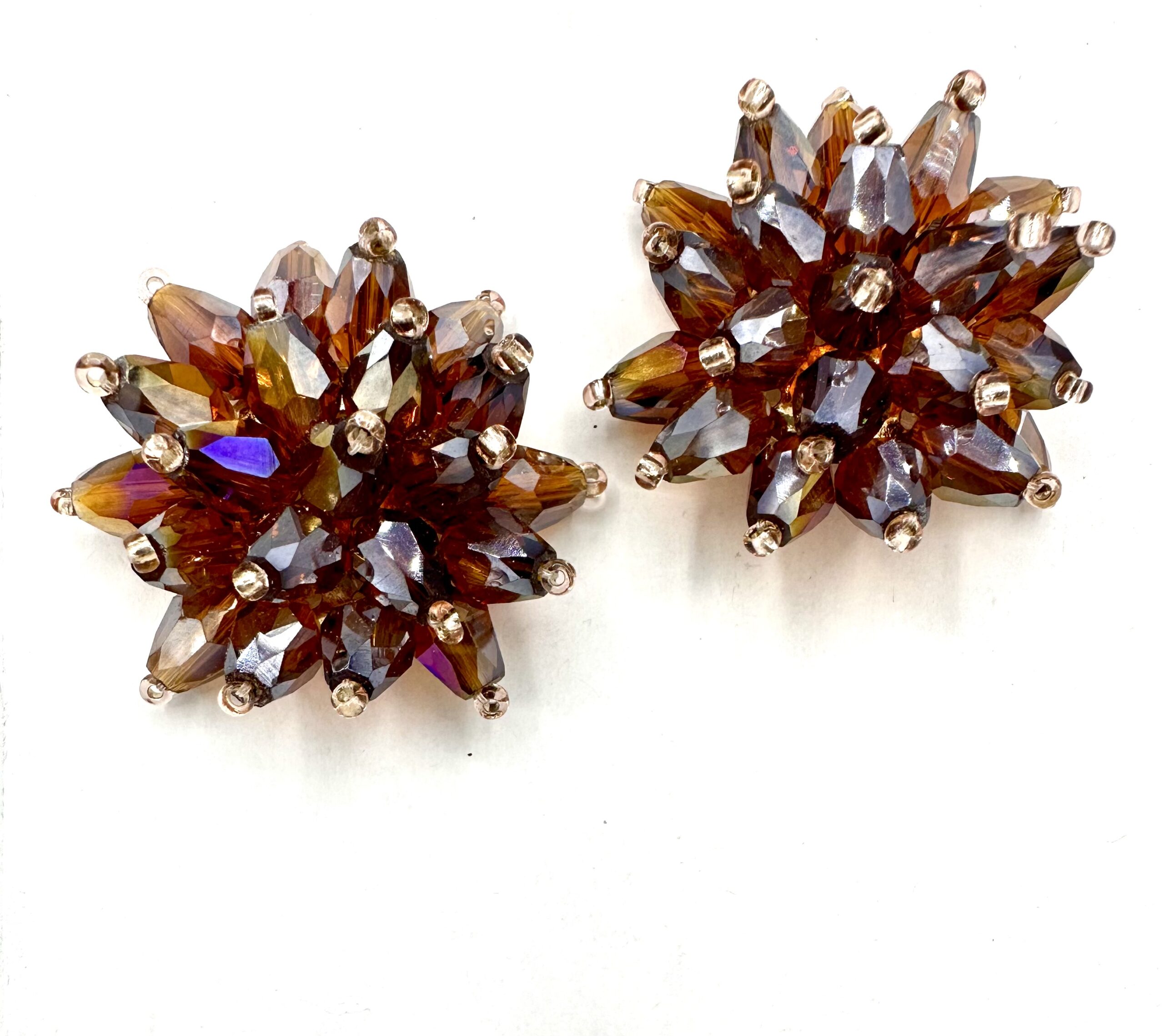 orecchini a forma di fiore con swarovsky color ambra, realizzati artigianalmente in India