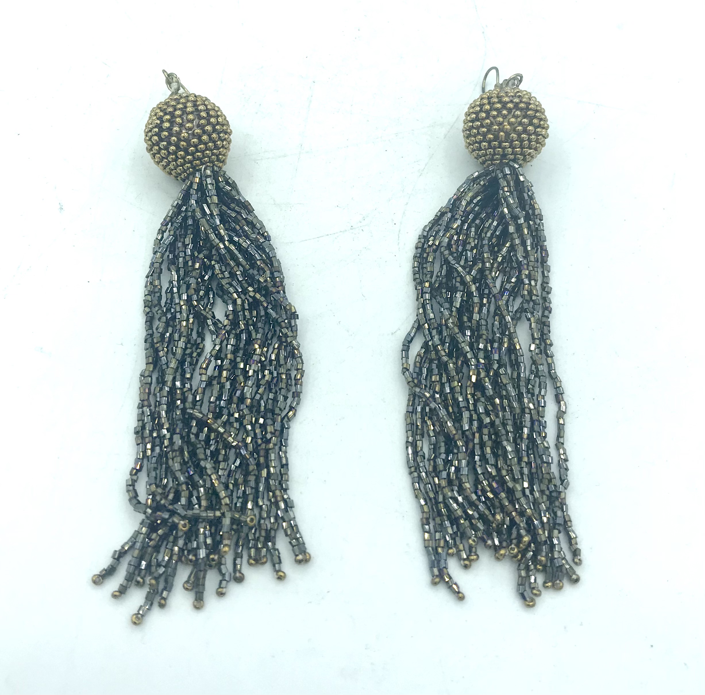 Realizzati artigianalmente in India, uniscono la delicatezza dei fili a cascata con la brillantezza di perline argentate e color oro. Ogni filo scende leggero formando una nappa fluida e scintillante, che ondeggia con grazia a ogni gesto.