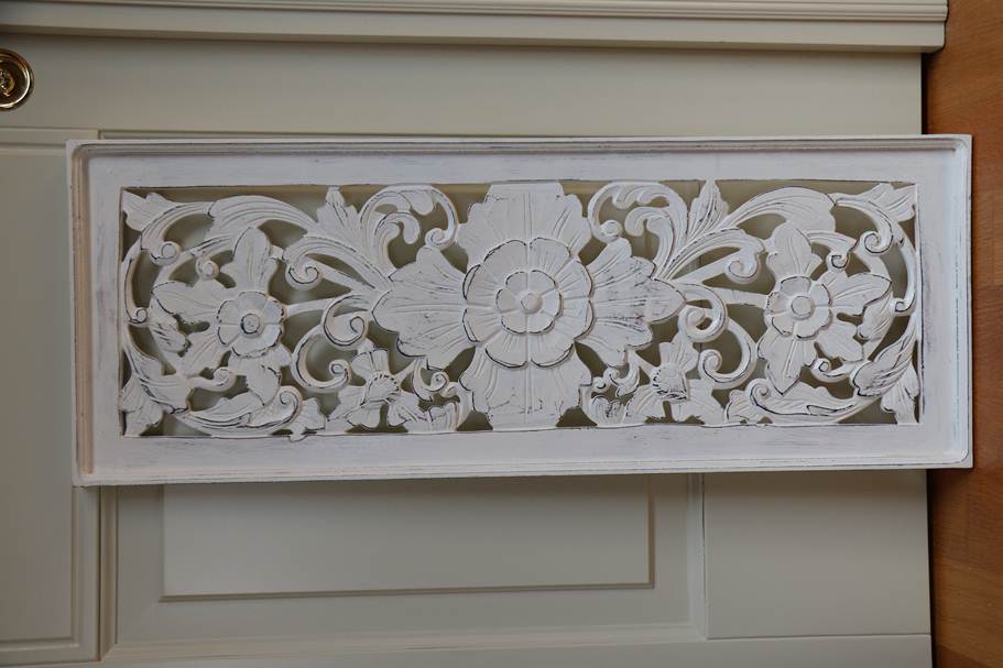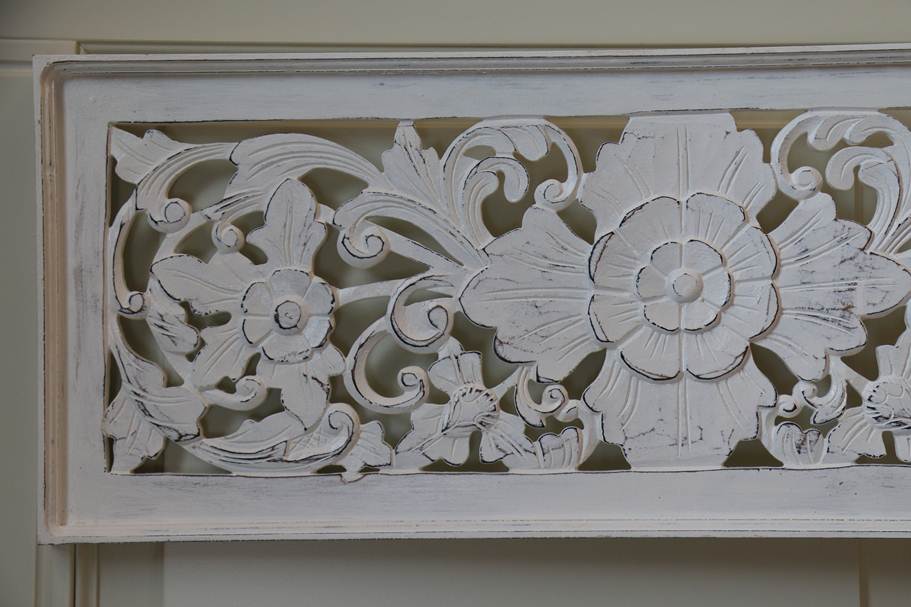 Il pannello Itan è un’opera d’arte tradizionale e intricata dell’ artigianato indonesiano, realizzato in pasta di legno e dipinto di bianco, presenta un design traforato con dettagli finemente intagliati.