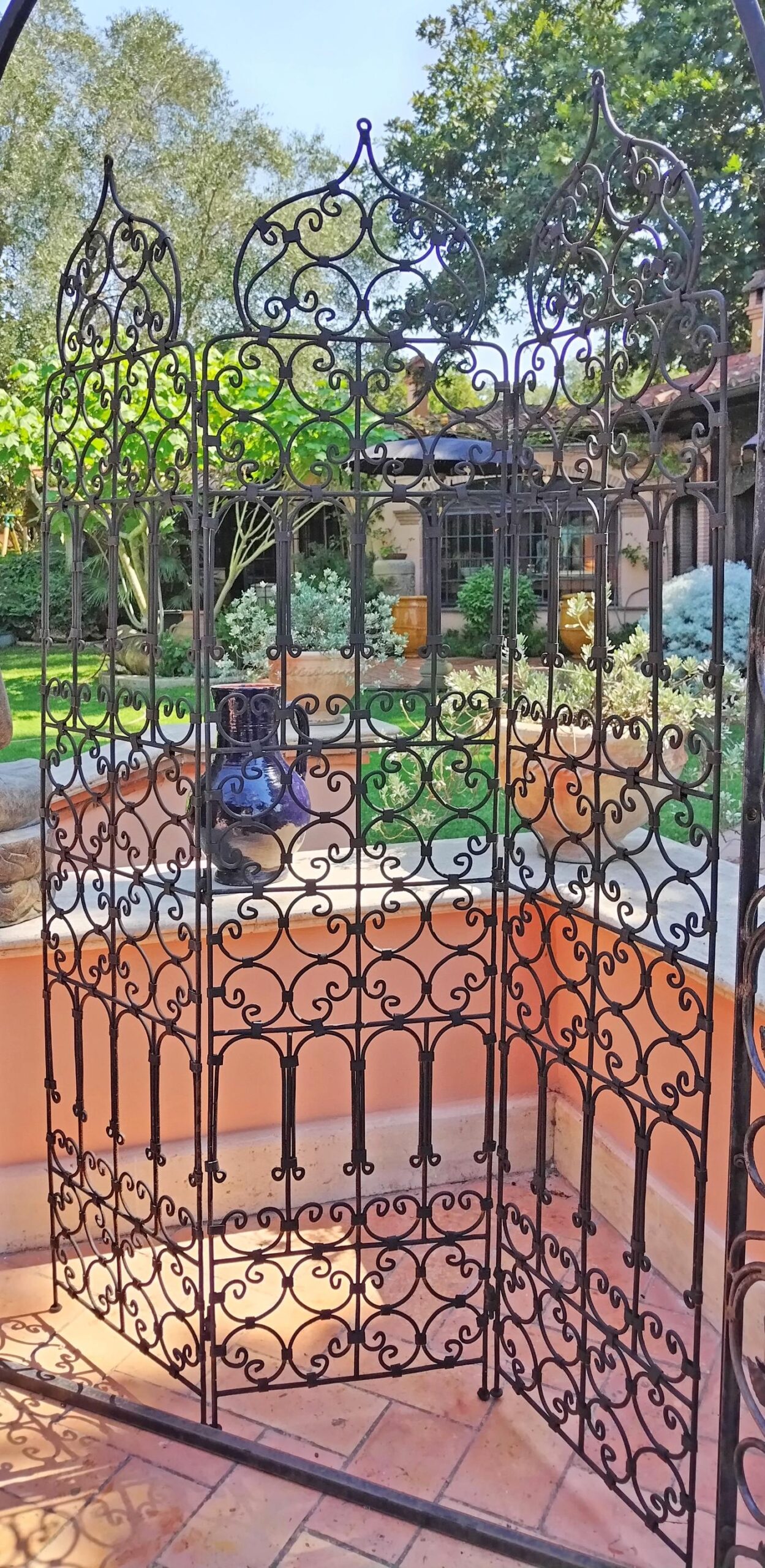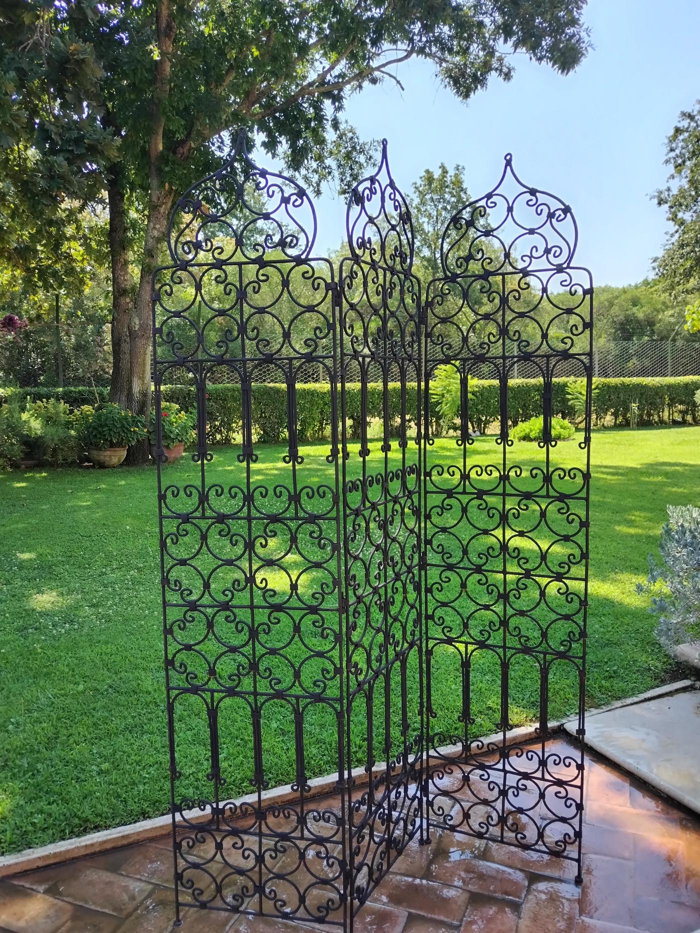 Paravento in ferro battuto, a tre parti, realizzato artigianalmente in Marocco